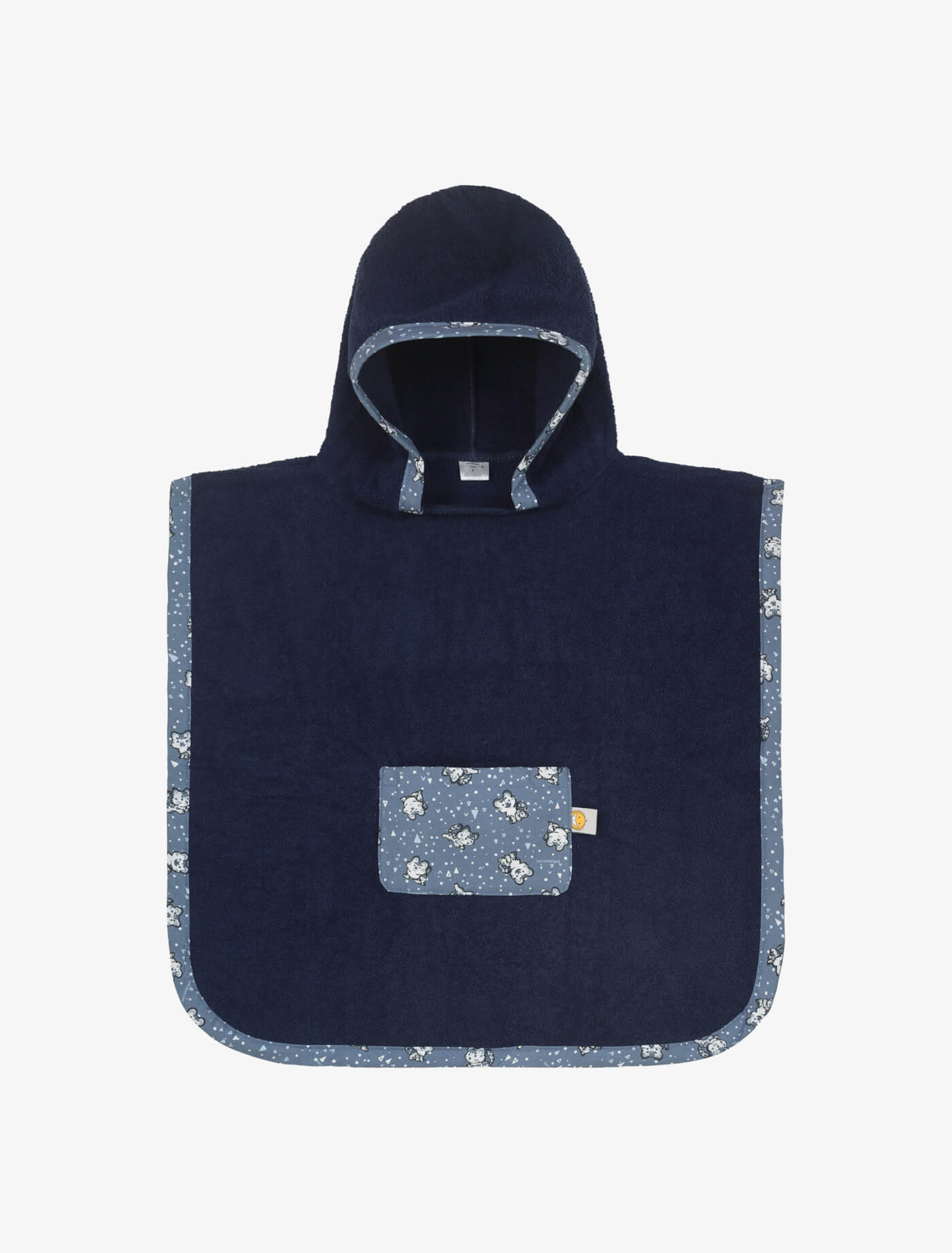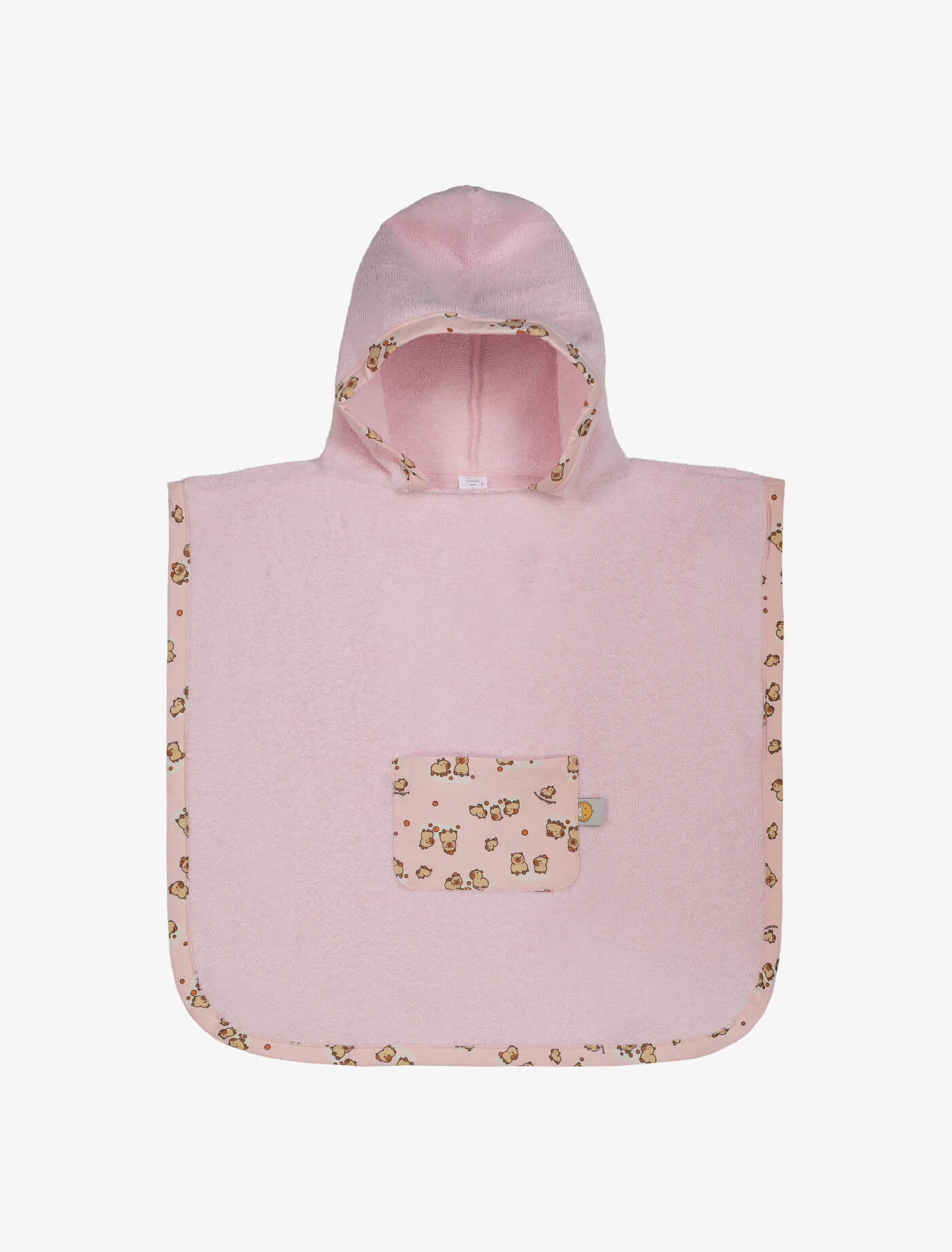 Poncho per bambina/o con cappuccio, realizzato in morbida spugna e foderato in divertenti fantasie di cotone