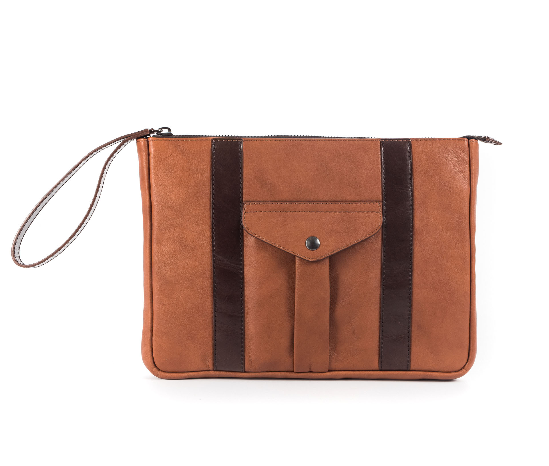 Porta computer in vera pelle, bicolore, dedicato ai dispositivi elettronici di piccole dimensioni.