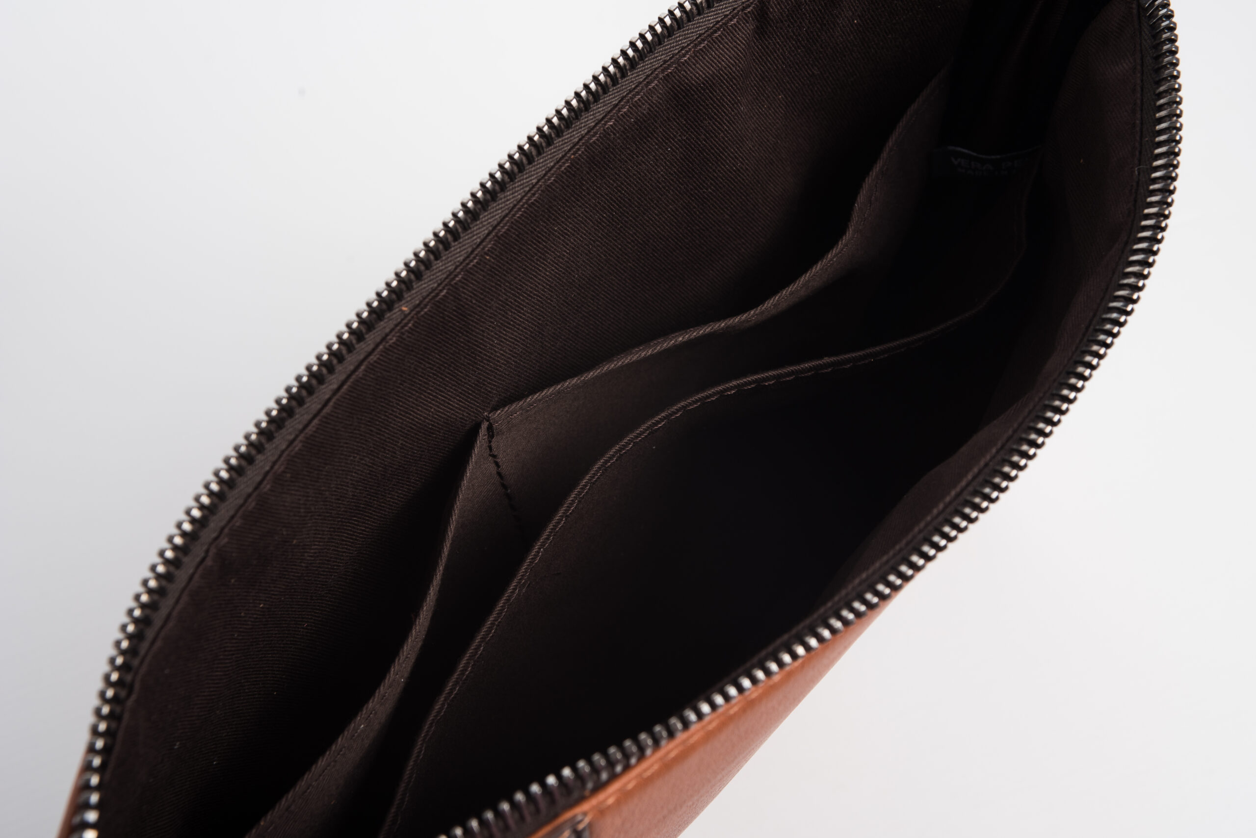Borsa porta pc in vera pelle, adatto a dispositivi di piccole dimensioni. Esternamente è presente una tasca ed internamente vi sono tre tasche per tenere in ordine i tuoi accessori.