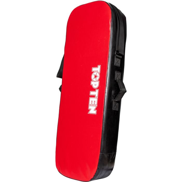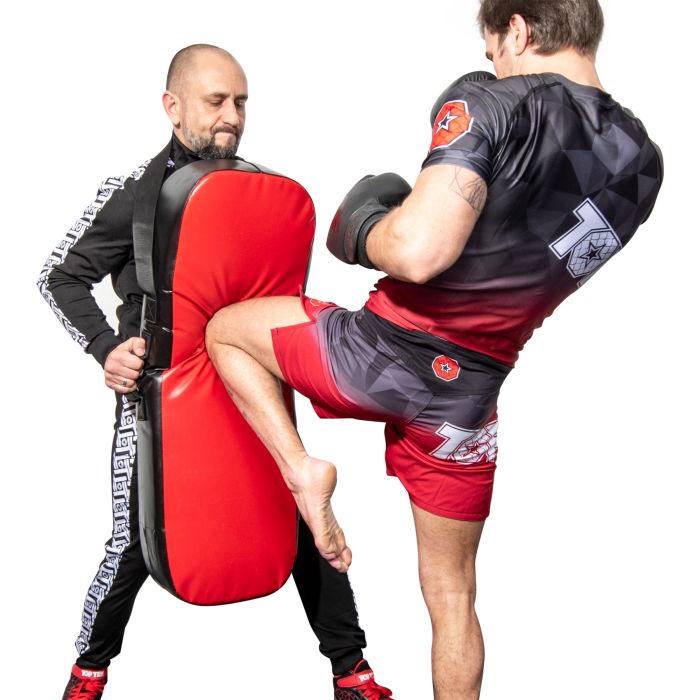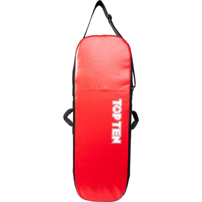Long, longer, “Kick Case.” With this blow cushion from TOP TEN, you bring more variety to your training. With a length of almost 1 meter, the “Kick Case” is the perfect training partner for low kicks, as the thighs and calves are covered over a large area. The “Kick Case” can be carried dynamically via an adjustable shoulder strap, a hook and loop fastener on the back for attaching the legs, and 2 side straps, bringing that competition feeling to the mat. The 15 cm thick foam pad runs straight over the entire surface and is extremely dimensionally stable. With…