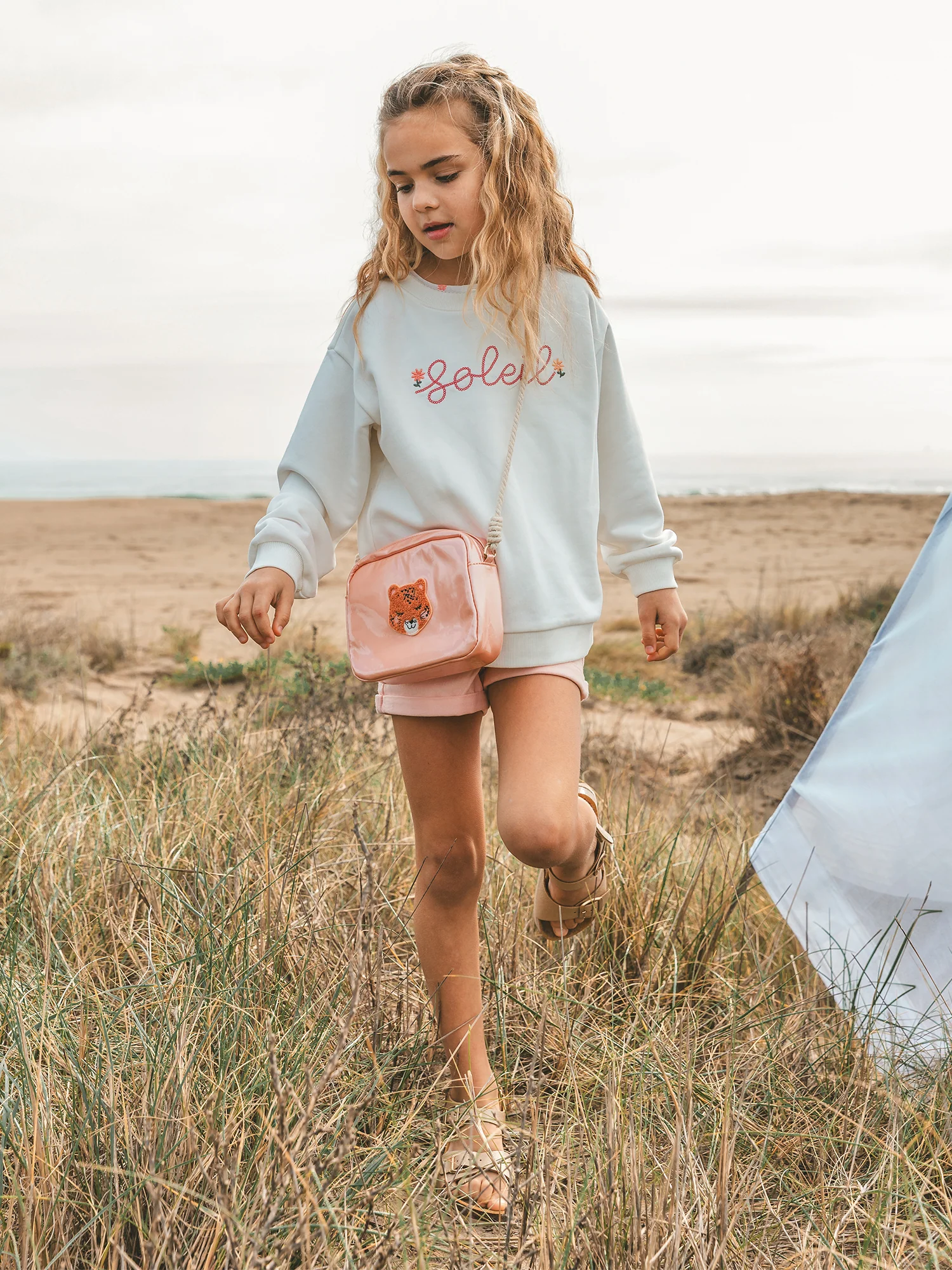 Ce sac est pensé pour les sorties estivales. Confectionné dans une matière irisée légère avec bandoulière en corde, il est facile à porter. Le patch guépard apporte une touche ludique dans un univers coloré et estival.
