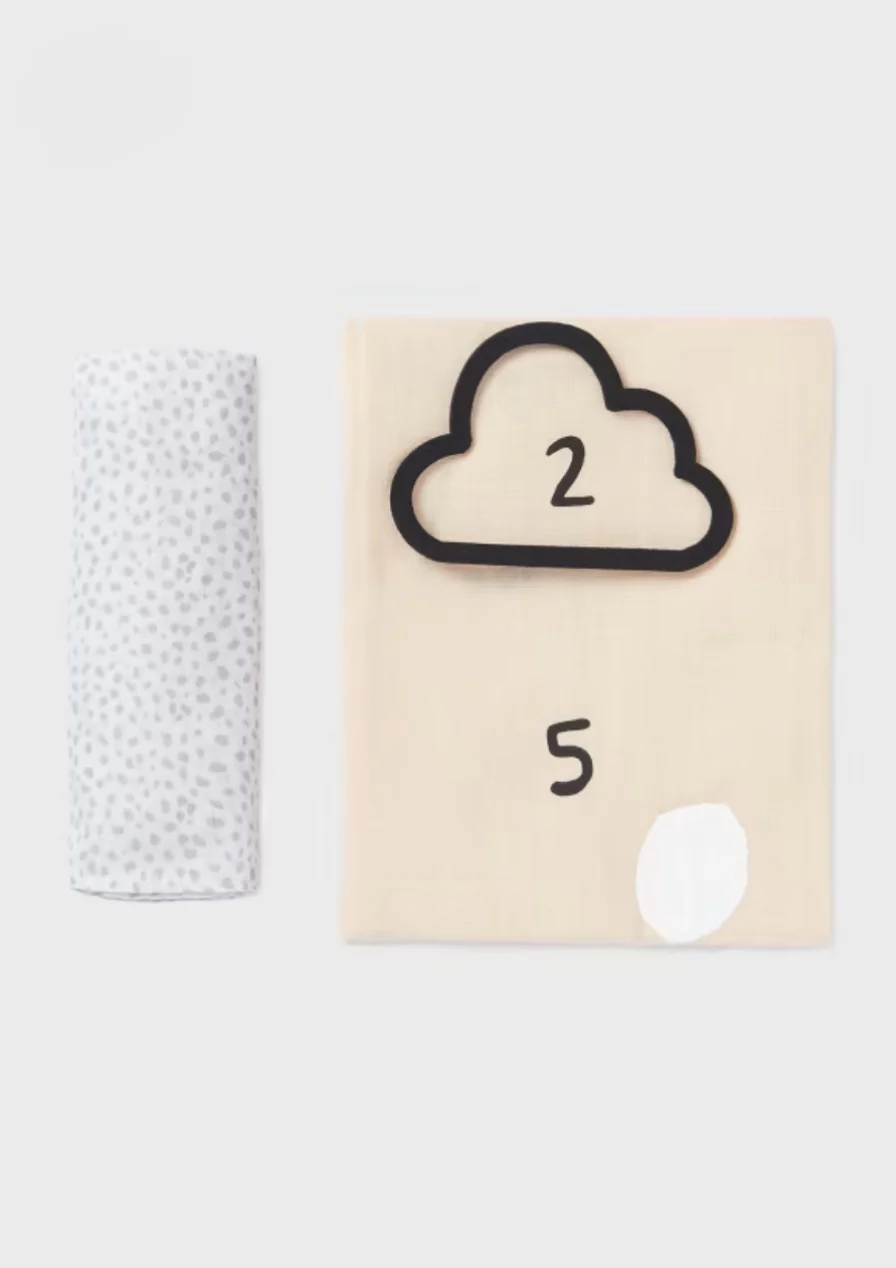 Set 2 quadrati con misuratore cotone neonato Rif. 30-19253-042/-043/-044