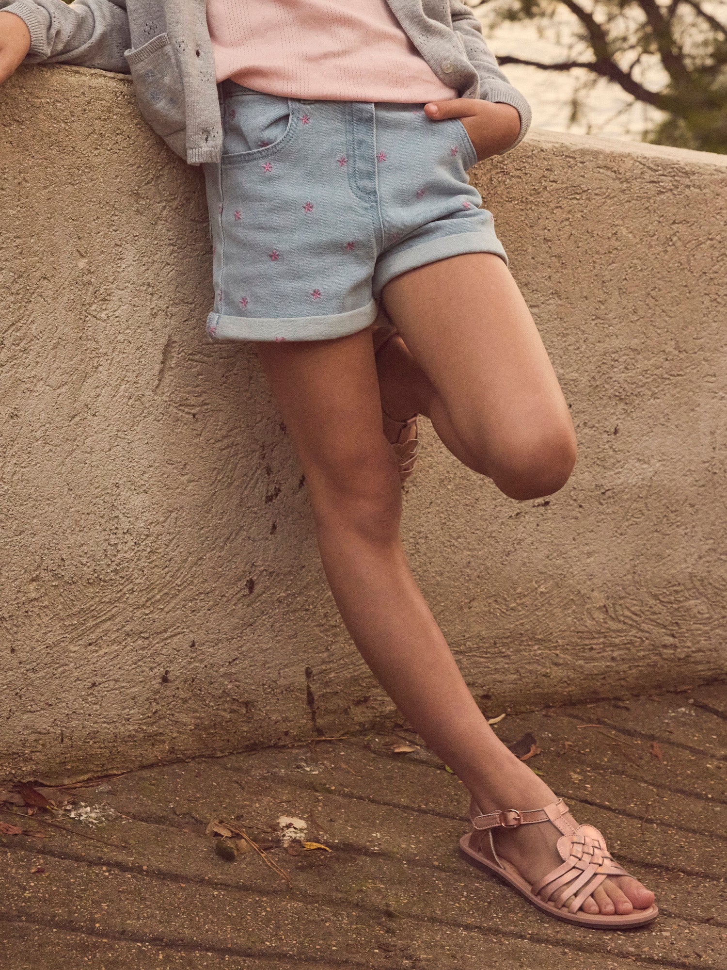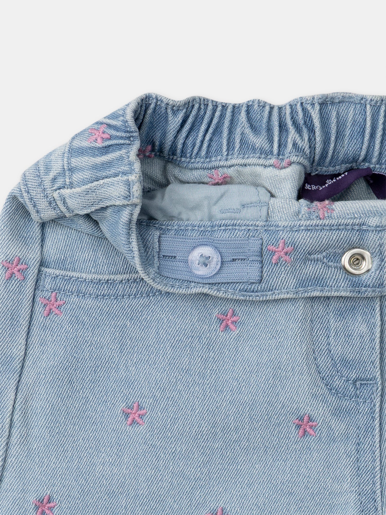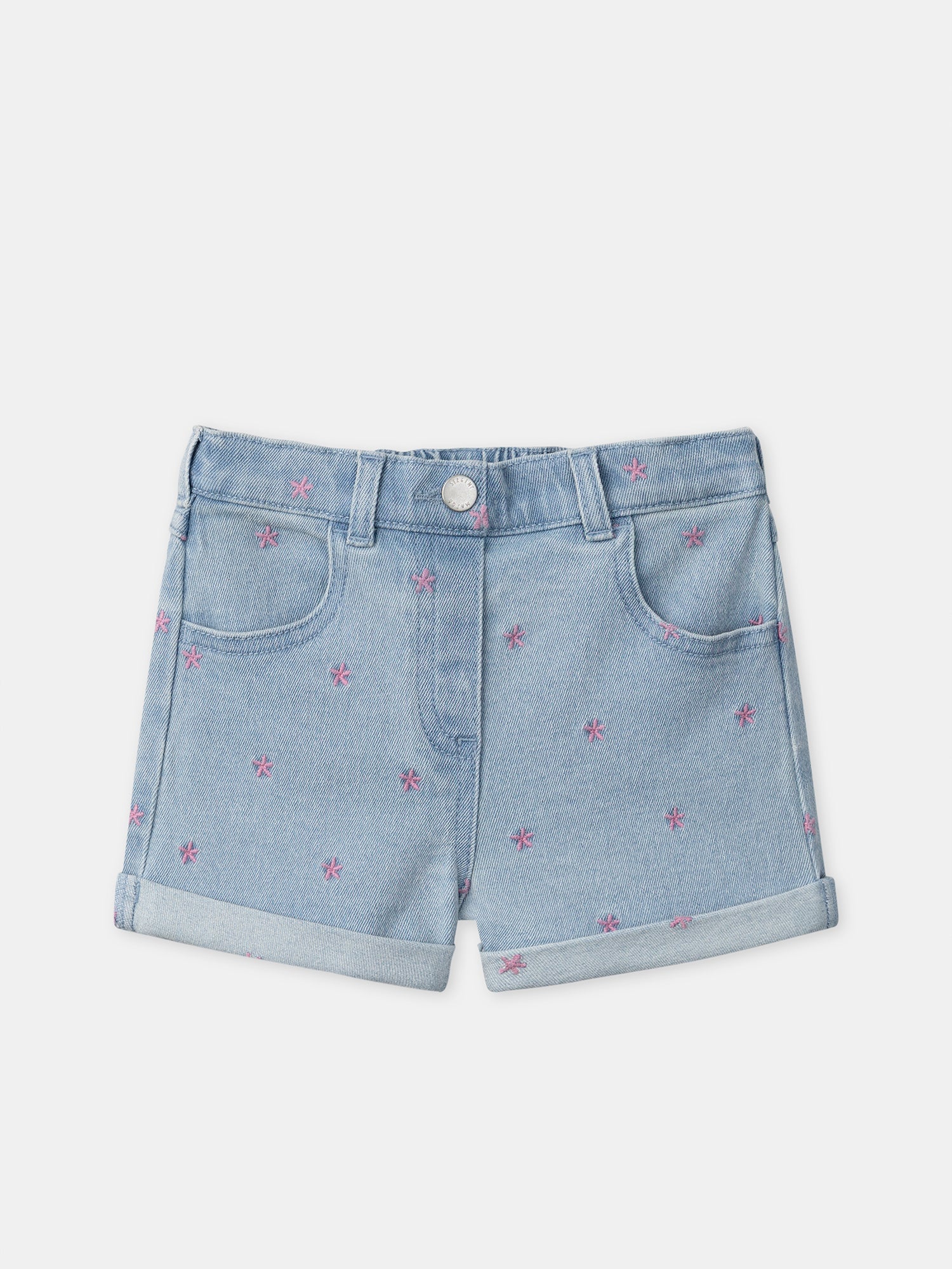 Questi shorts sono pensati per bambini attivi durante l’estate. In denim con vita regolabile, si adattano a tutte le forme del corpo. I ricami floreali rosa aggiungono un tocco estivo.