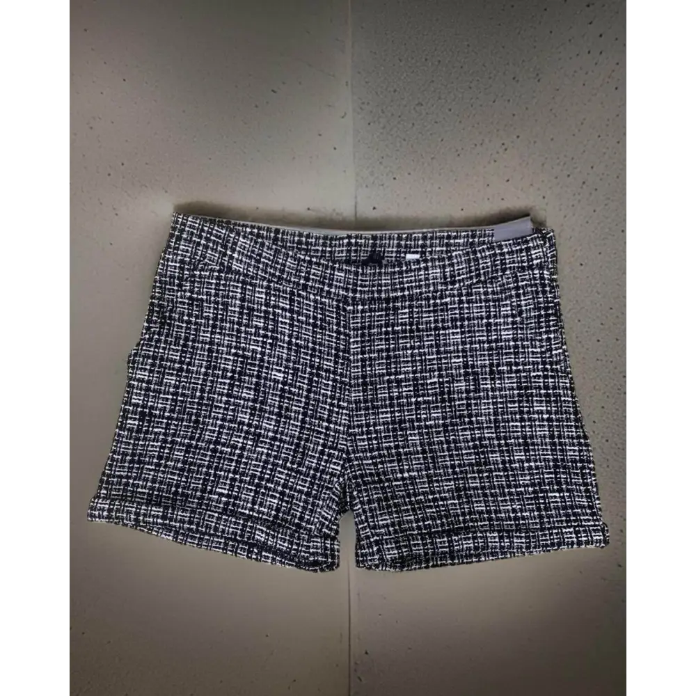 Eleganti pantaloni corti tessuto invernale, perfetti per la stagione fredda. Realizzati in un raffinato tessuto invernale bianco e nero, questi shorts offrono un look sofisticato e confortevole. Dotati di due pratiche tasche anteriori e un risvolto sull’orlo che aggiunge un tocco di stile.