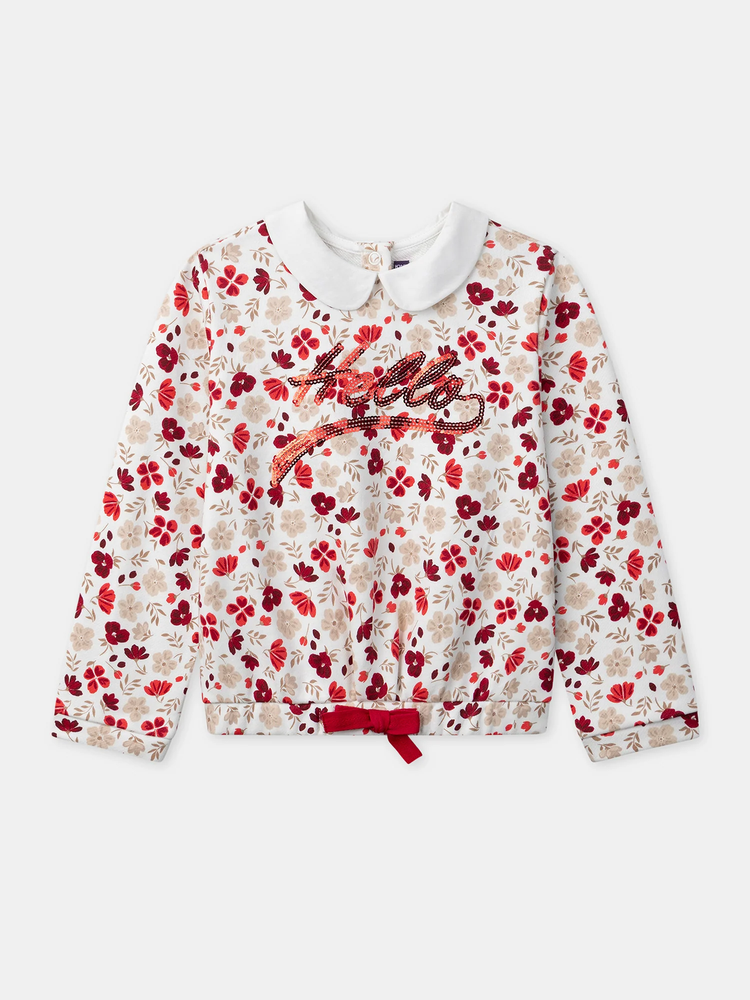 Sweat-shirt imprimé fleuri à sequins “Hello” et col claudine Fille