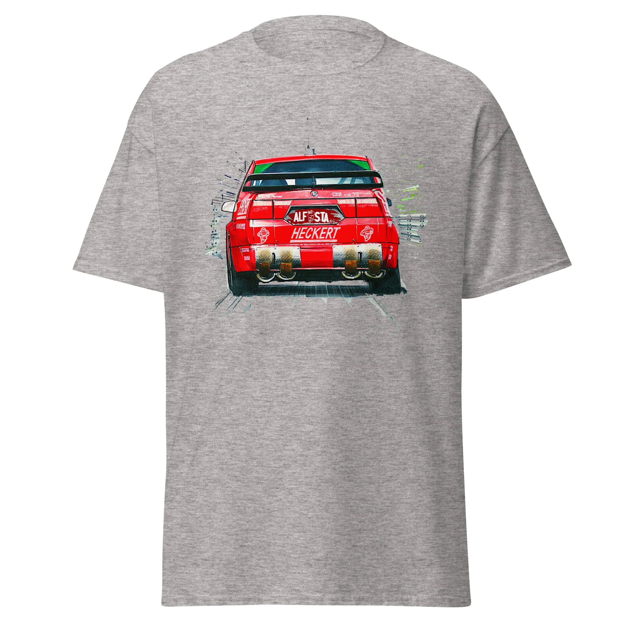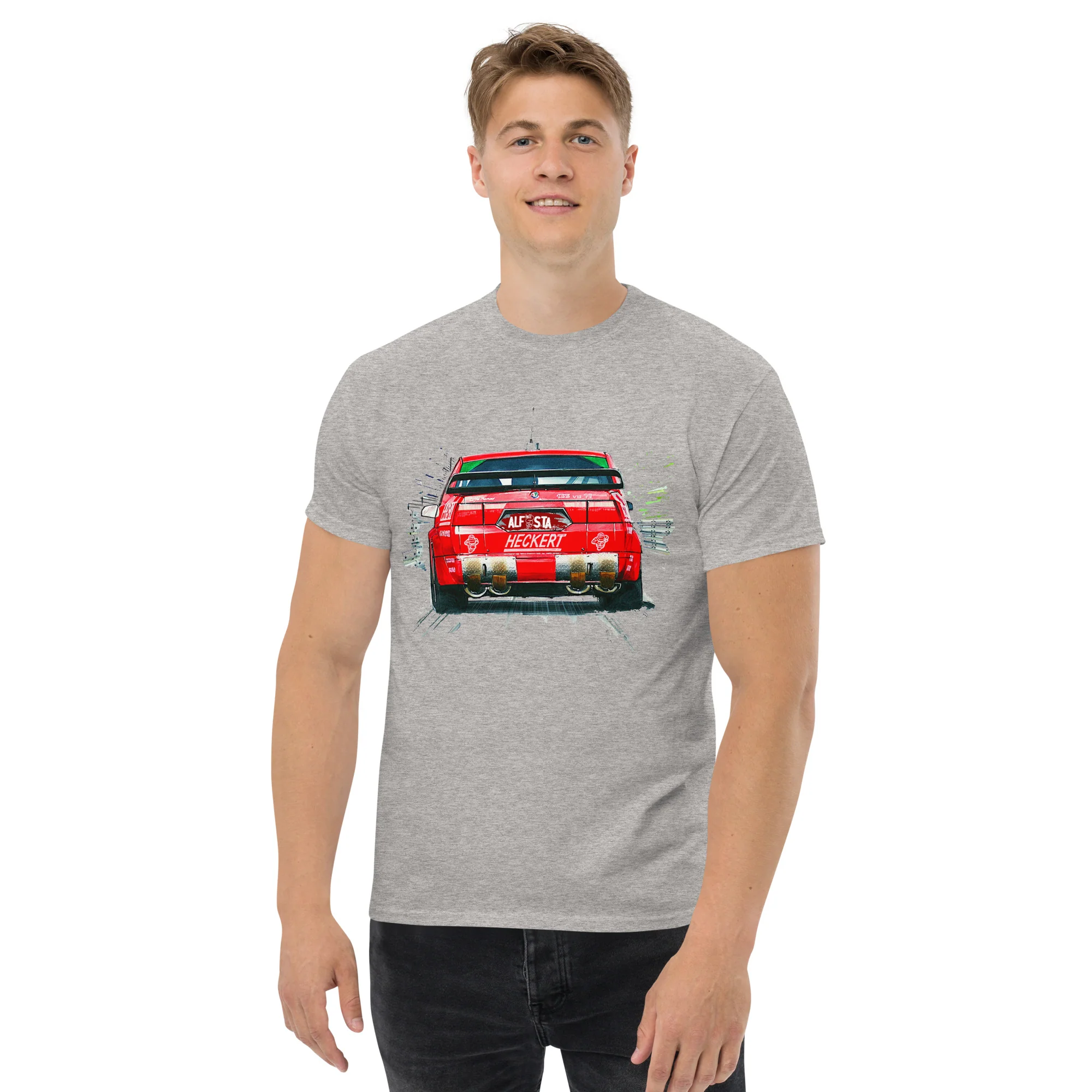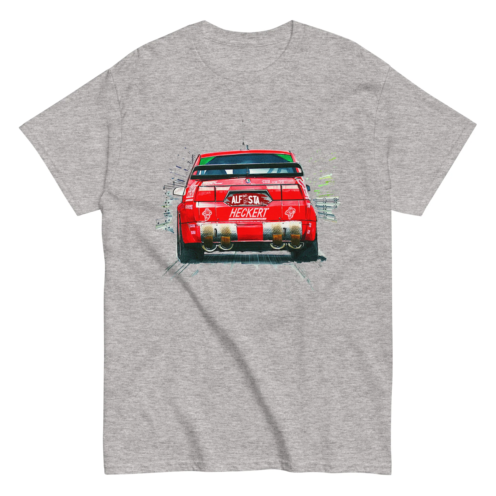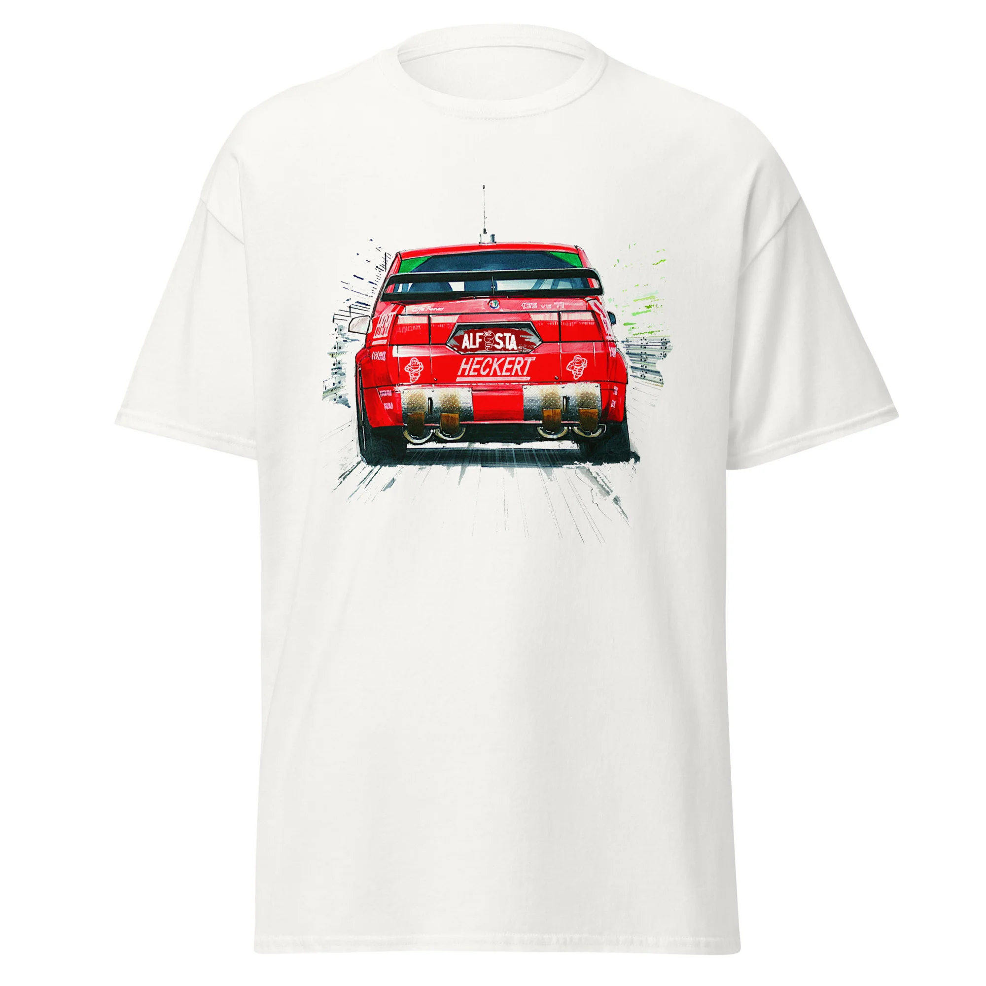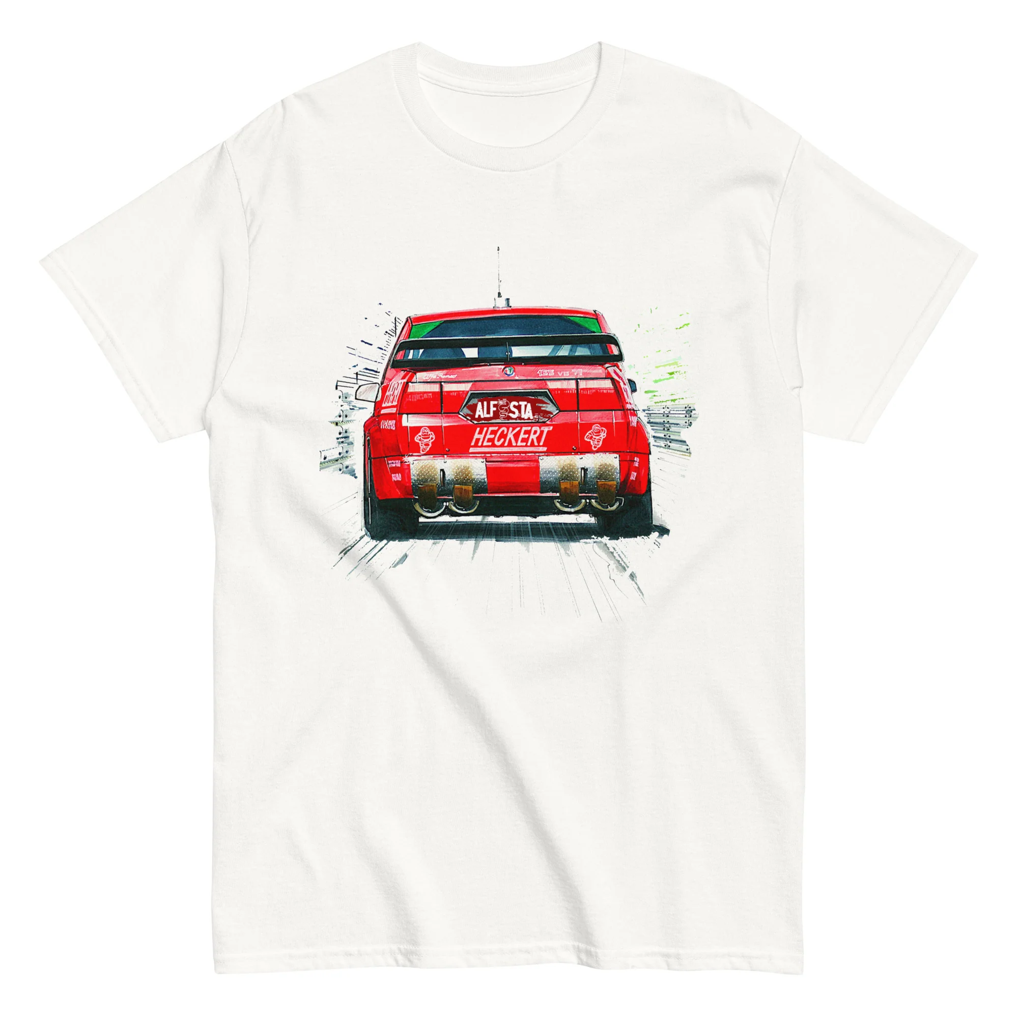 Unisciti alla tradizione di eleganza e prestazioni di Alfa Romeo con questa T-shirt unica nel suo genere. Ordina ora e aggiungi un pezzo di storia automobilistica al tuo guardaroba.