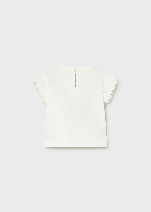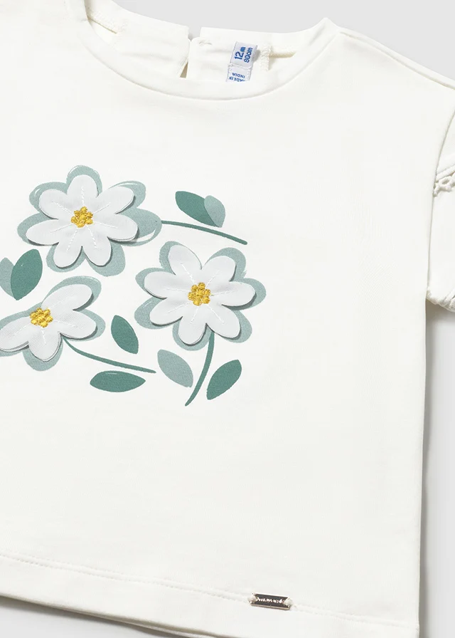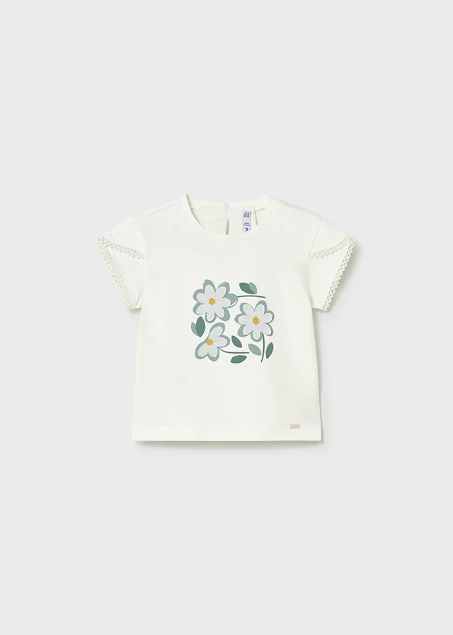 T-shirt in cotone morbido con delicata stampa floreale, perfetta per le giornate di primavera ed estate. Realizzata da Mayoral, combina comfort e stile con un design femminile che valorizza la naturalezza. Ideale per neonati e bambine, offre libertร di movimento e praticitร di lavaggio. Un capo versatile da abbinare facilmente con altri pezzi della collezione. Art. 1079-091
