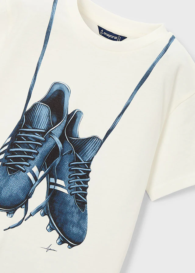 T-shirt in cotone morbido con stampa scarpette, perfetta per il guardaroba estivo del tuo bambino. Design pratico e confortevole firmato Mayoral, ideale per giocare e muoversi liberamente. Dettagli ricercati e colori vivaci che resistono ai lavaggi ripetuti. Facile da abbinare con pantaloni o shorts per uno stile casual e raffinato. Art. 3075-074