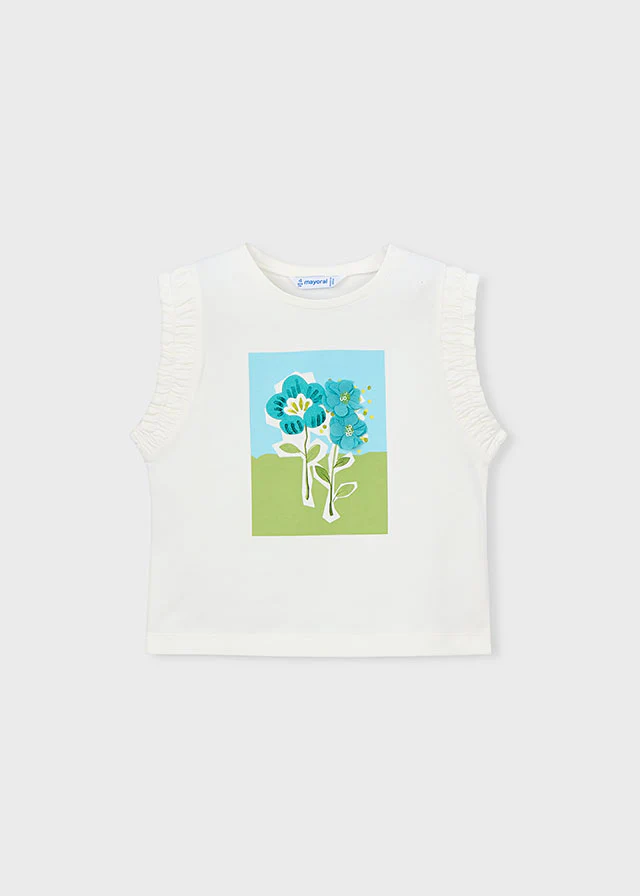 T-shirt a giromanica in cotone morbido, perfetta per le giornate di primavera e estate. Il design delicato con dettagli floreali cattura lo stile Mayoral, noto per la qualitร premium e i tagli che valorizzano il comfort della bambina. Ideale per look casual e versatile, da abbinare facilmente con pantaloni o gonne della collezione. Art. 3023-039