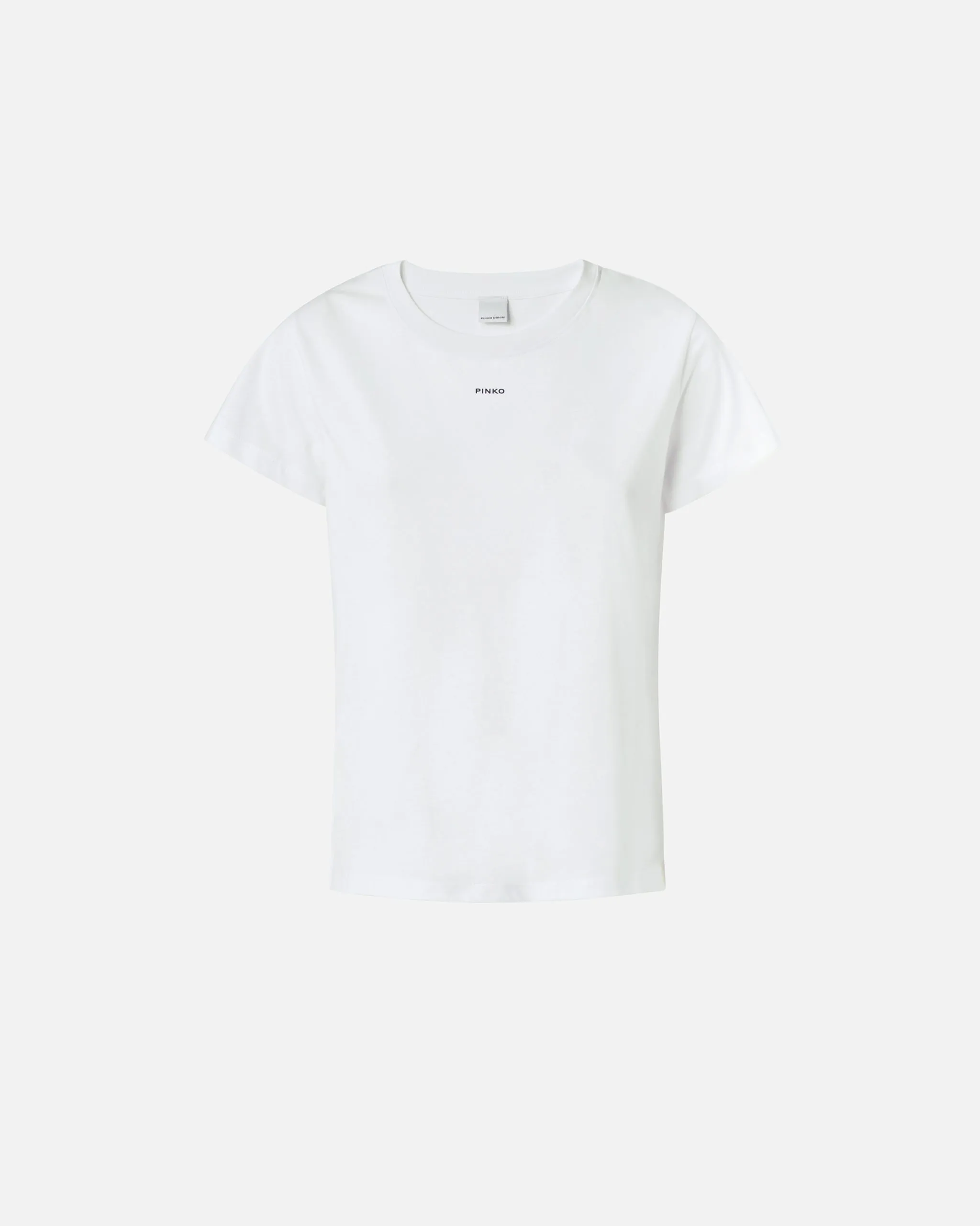 T-shirt a maniche corte in jersey di cotone trattamento old wash personalizzata con stampa mini logo PINKO centrale davanti.