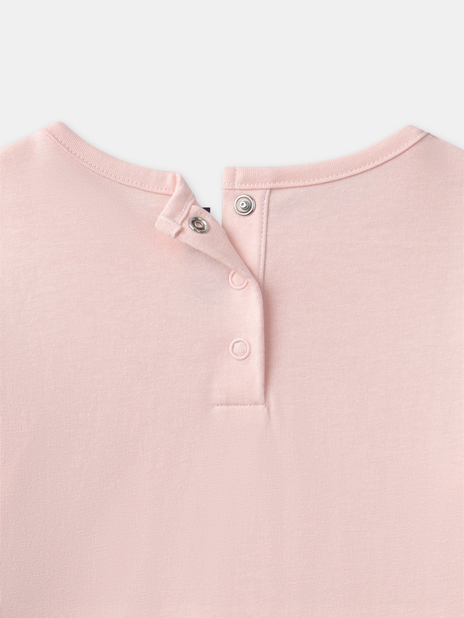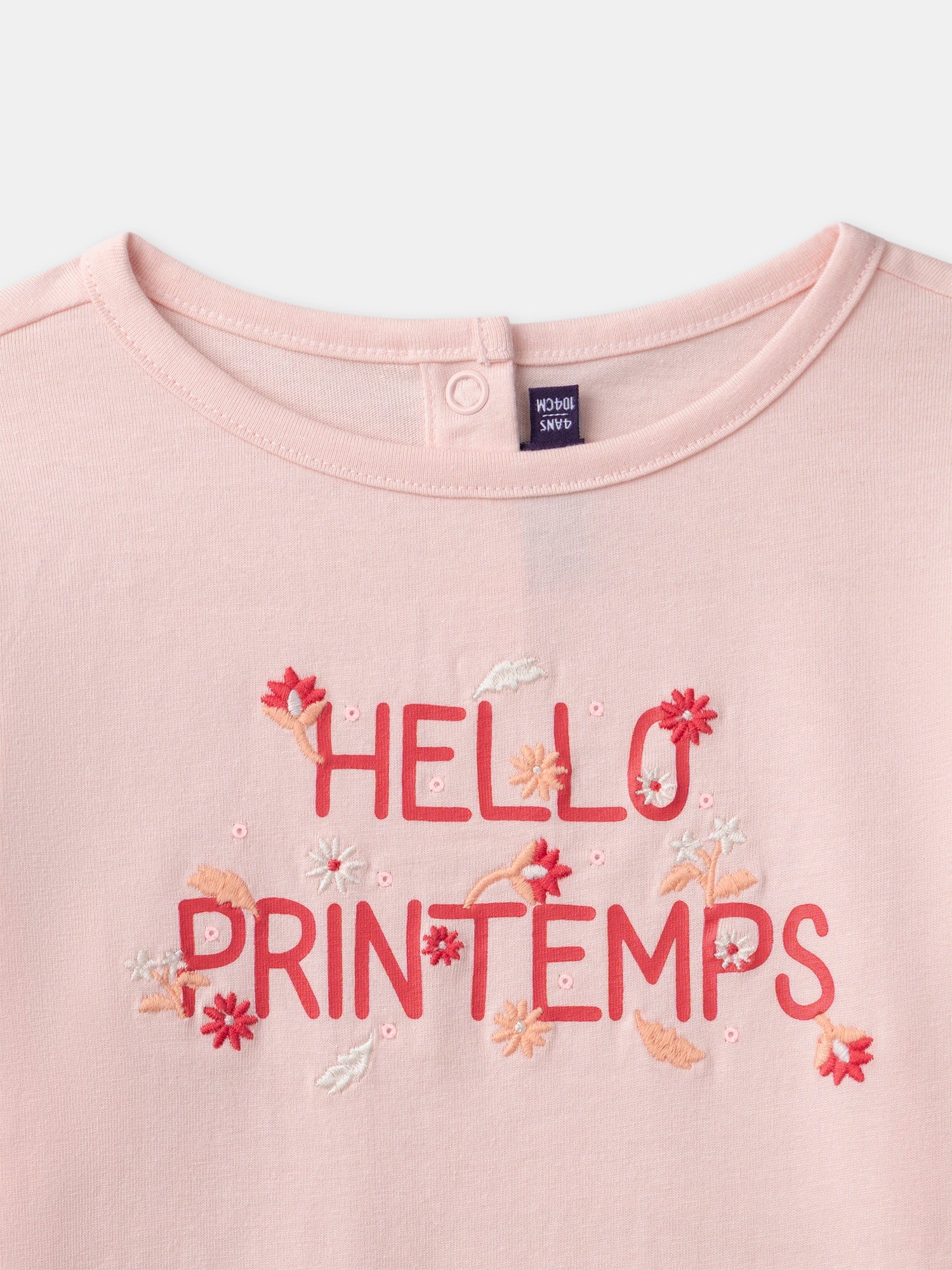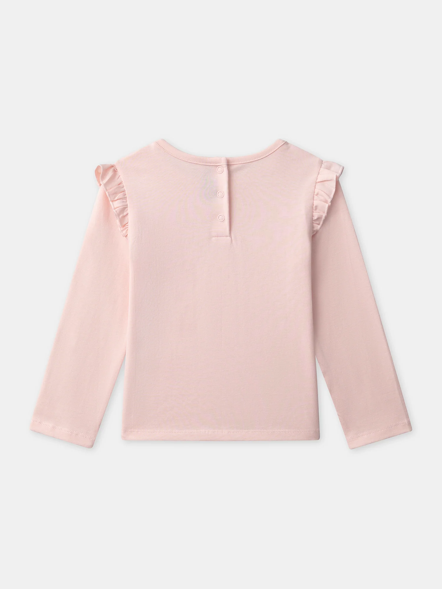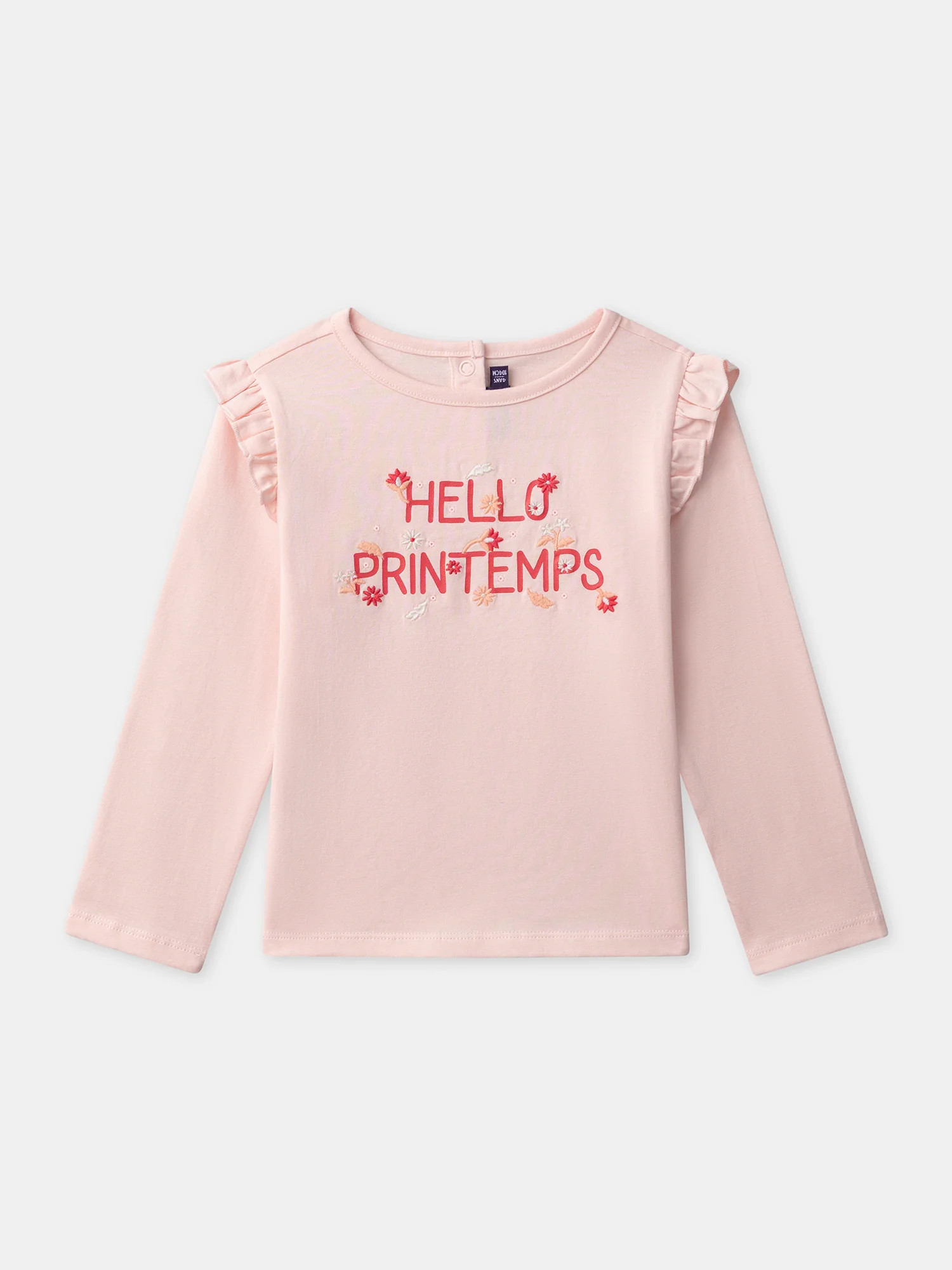 Per una bambina allegra che ama i look luminosi, ideale per la primavera. Il jersey morbido e i volant sulle spalle offrono comfort e leggerezza. La stampa, le ricami e le paillettes creano un’atmosfera festosa.