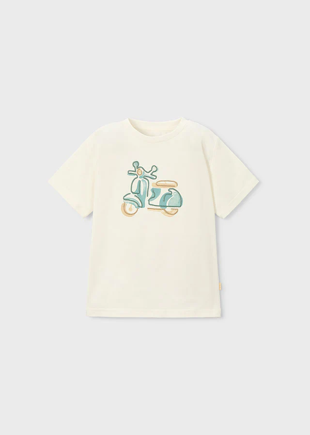 T-shirt in cotone morbido con stampa Vespa vintage per bambino. Design iconico e giocoso che cattura lo spirito retrรฒ, perfetto per uno stile casual e spensierato. Taglio comodo e pratico, ideale per il gioco e le avventure quotidiane. Collezione Mayoral, qualitร affidabile per i piรน piccoli. Art. 3060-072