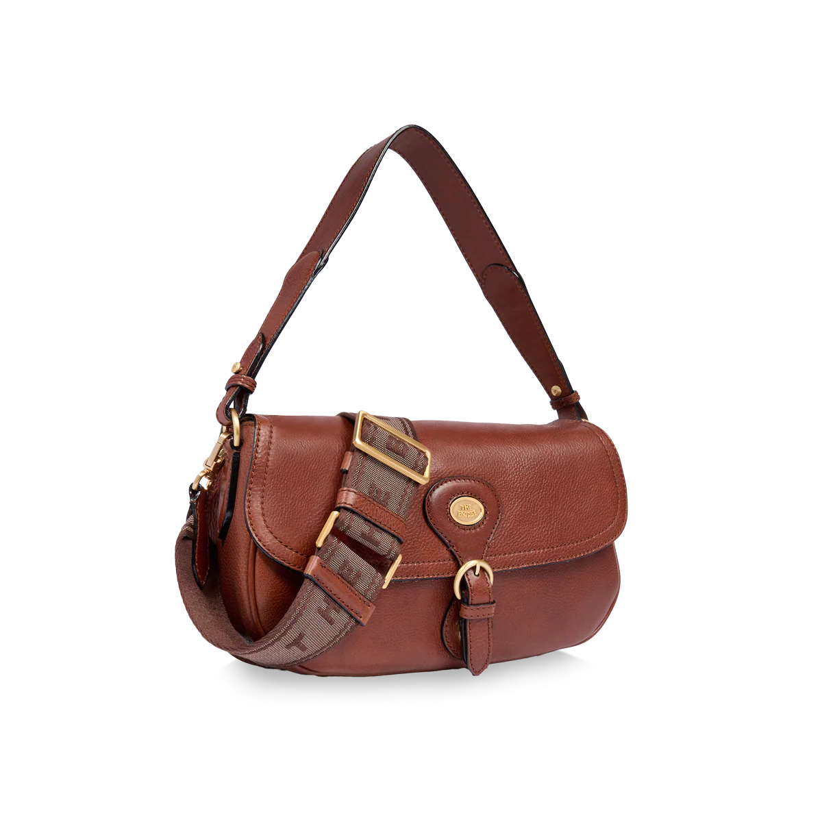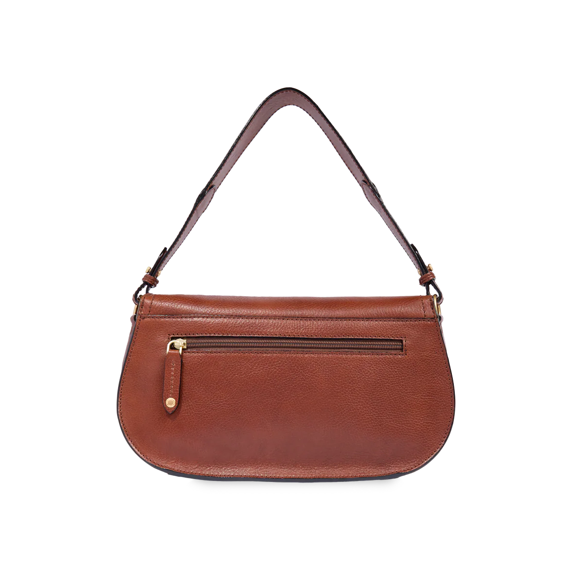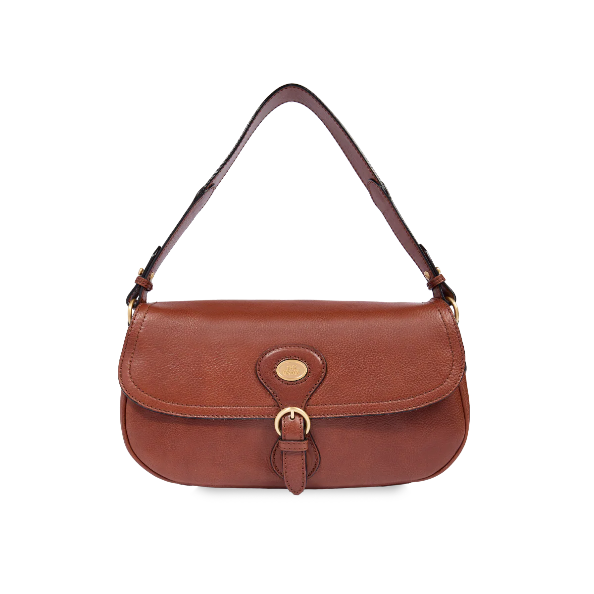 - Borsa in pelle con tracolla removibile e doppia portabilità, da portare a spalla o a mano, con patta e fibbia frontale.