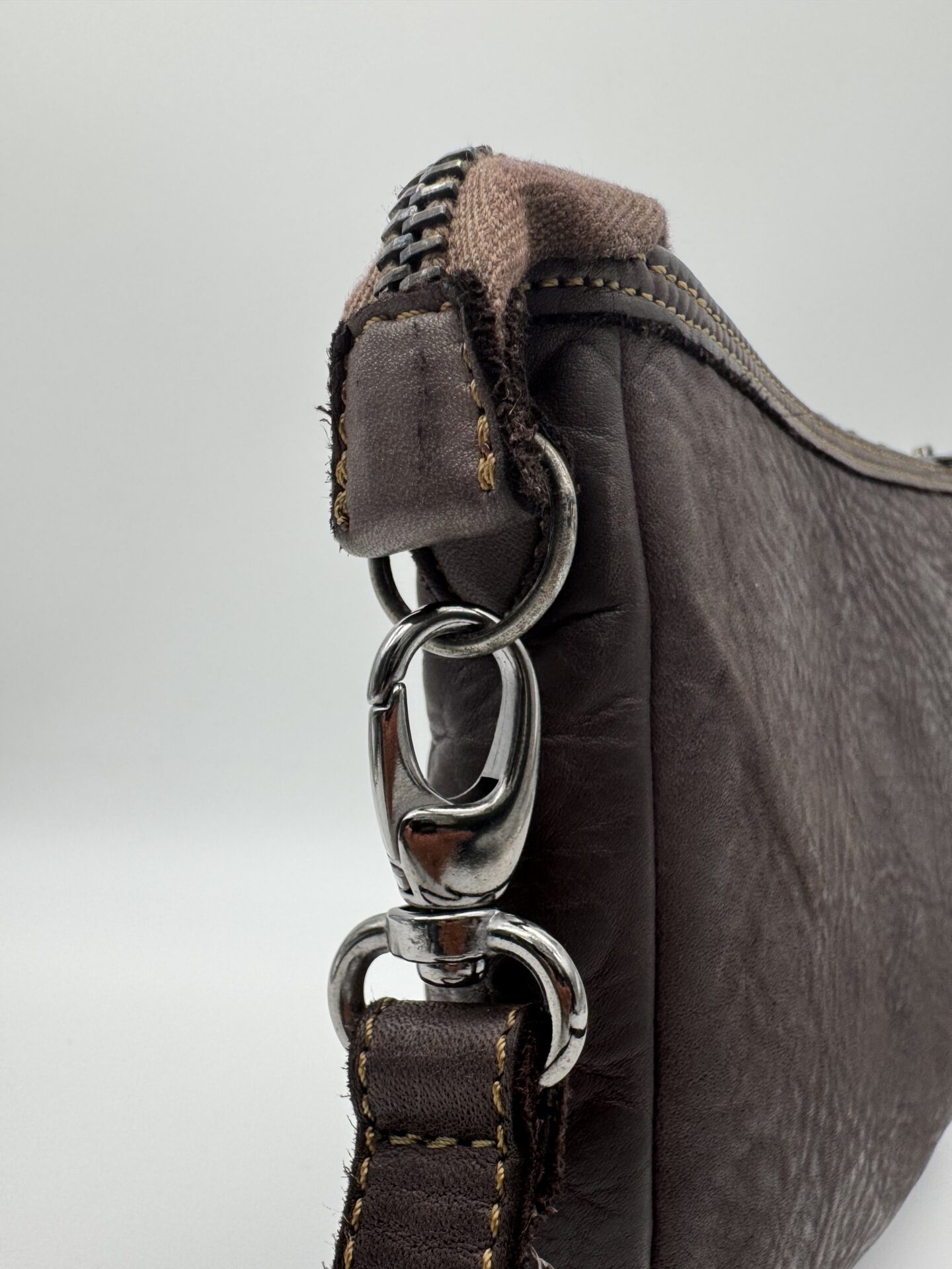 L’interno, foderato in cotone che ha assunto il colore della borsa, presenta una piccola tasca a zip.