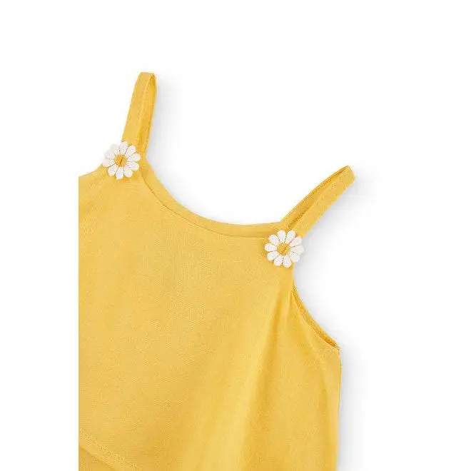 Il top bimba Boboli giallo colpisce per il suo design vivace e allegro. Questo capo รจ ideale per la stagione calda. Il colore acceso porta gioia in ogni outfit. Le spalline sottili offrono praticitร e libertร nei movimenti. Il doppio strato dona un tocco raffinato ma semplice.