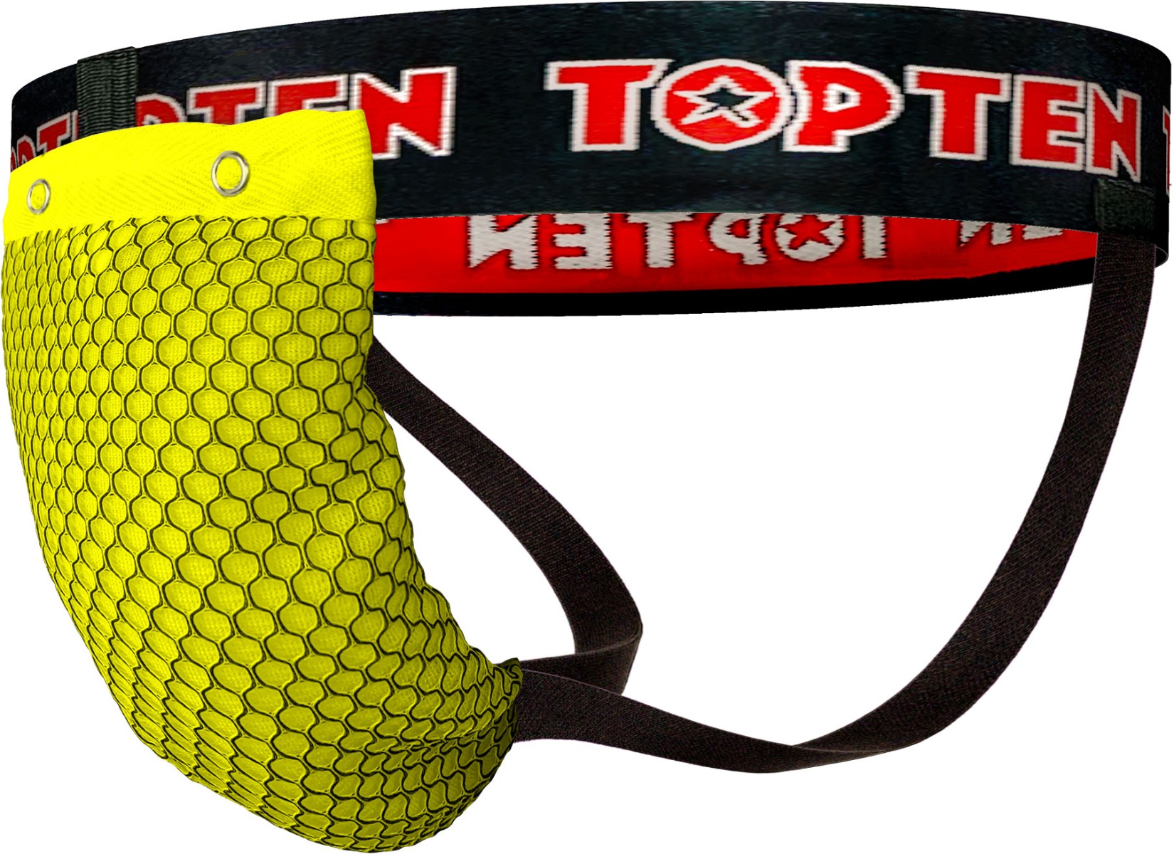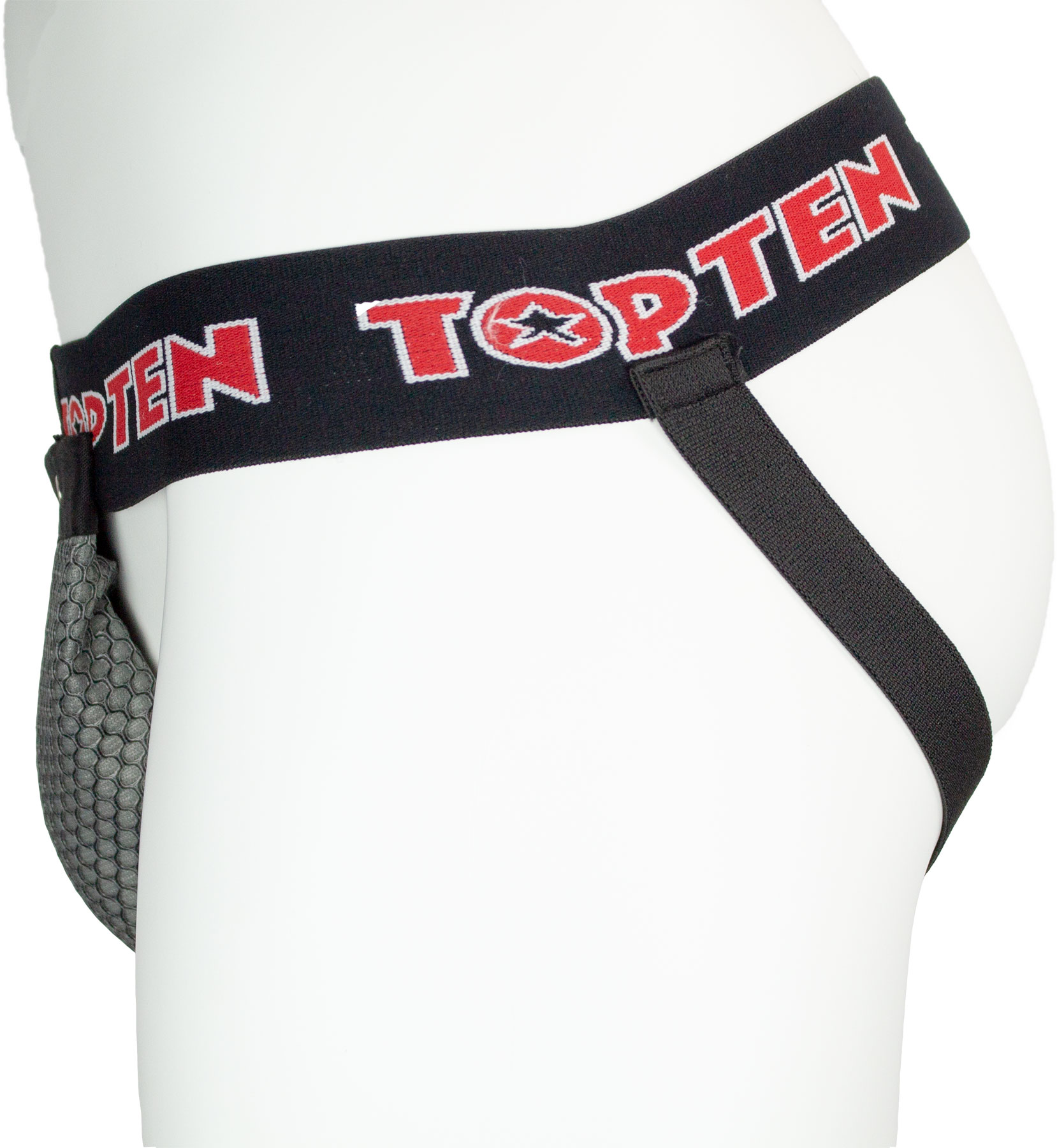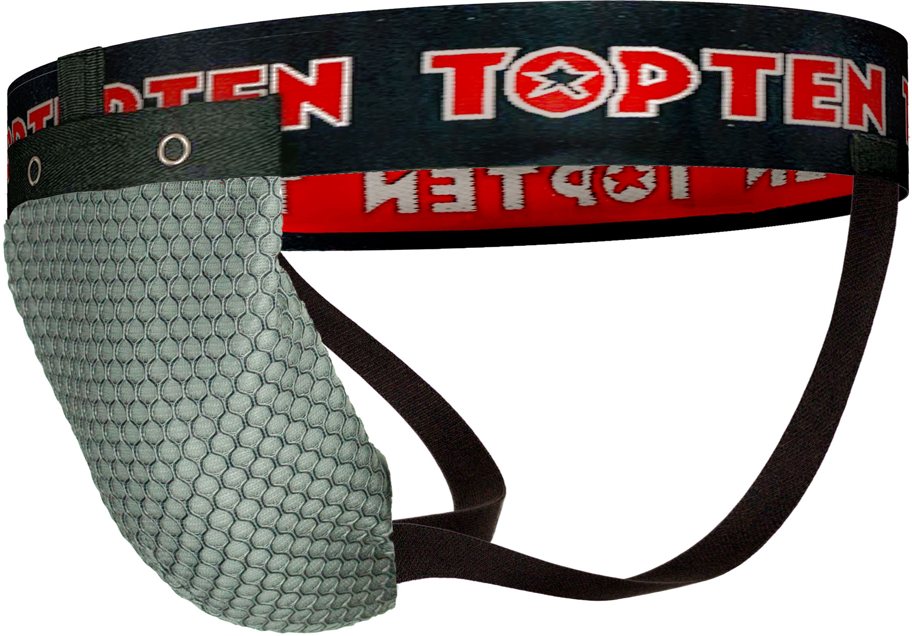 TOP TEN designed the groin guard 2019 with a pad in a unique honeycomb structure. The replaceable cup can be easily inserted and protects the genital area. The sides are made especially soft to avoid unpleasant skin friction. Due to the wide, elastic TOP TEN waistband and two additional side straps, the Jockstrap fits perfectly even during intense sporting challenges. Additional advantages: interchangeable cup soft microfibre fabric kind to the skin easy care
