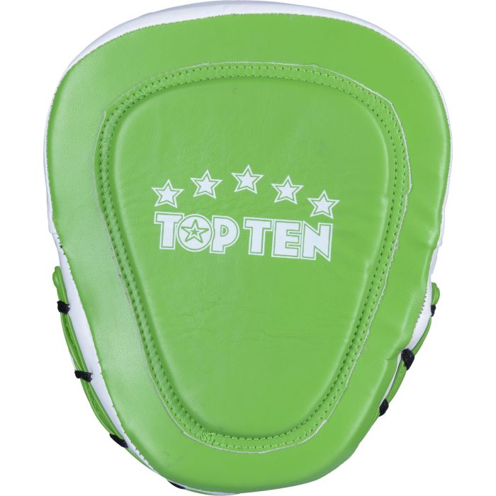 I guanti da passata Focus “INTRO” di TOP TEN assicurano un inizio brillante. Con loro, puoi aspettarti una preparazione alle competizioni di prima classe e la massima sicurezza. I guanti Focus “INTRO” consistono in una copertura doppia. Un mix di pelle e pelle sintetica fornisce la presa necessaria e rende i guanti Focus estremamente resistenti. Il nucleo in schiuma a poro aperto dei cuscinetti “INTRO” distribuisce l’energia su tutta l’area di 20 cm x 17 cm con una zona d’impatto rialzata, che protegge il titolare. Una guida precisa della mano e una chiusura a strappo regolabile per la regolazione individuale…