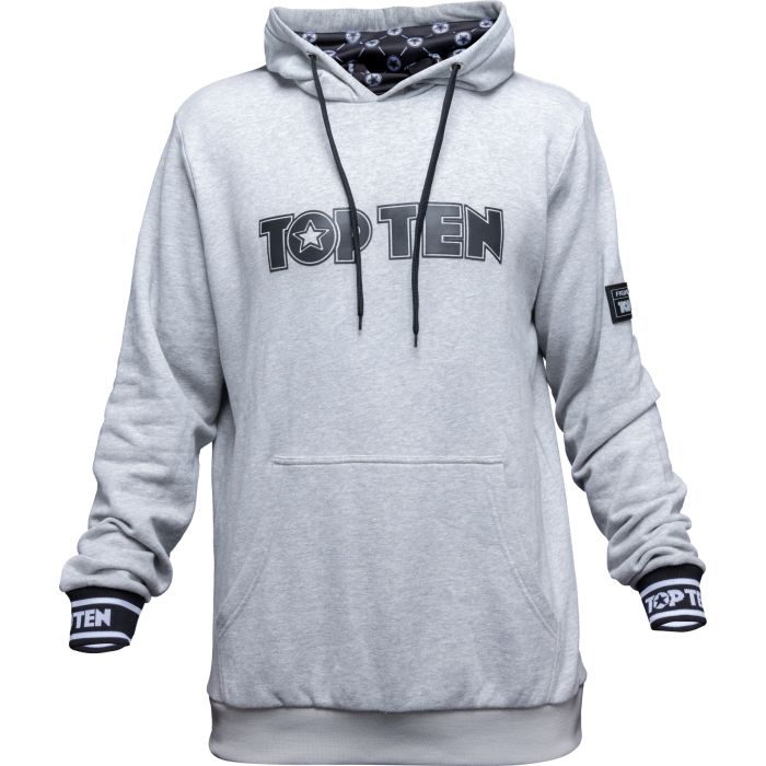 Are you looking for a comfortable sweater that you can wear for sports and leisure activities? Then, the TOP TEN “Fight Club” hoodie is the right choice for you. It impresses with its pleasantly soft wearing comfort and the classics: kangaroo pocket and drawstring hood. The cuffs of the “Fight Club” hoodie are all elastic, so wind and cold won’t harm you. Additional advantages: quilted hood generous kangaroo pocket classic cut tight-fitting cuffs Side patch “TOP TEN Fight Club”