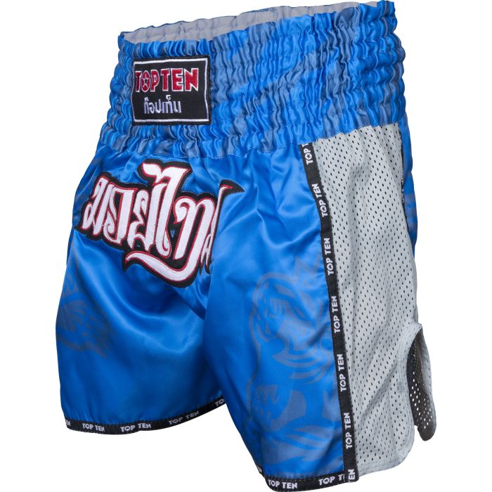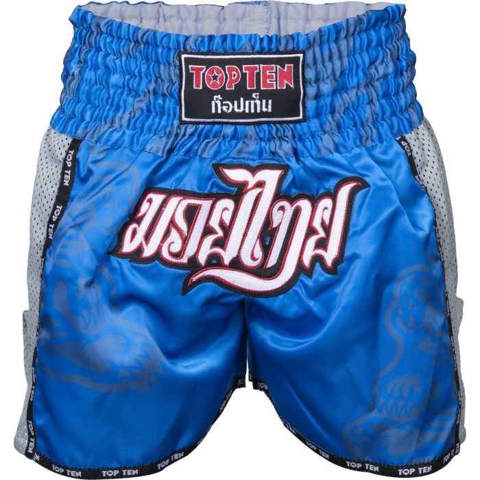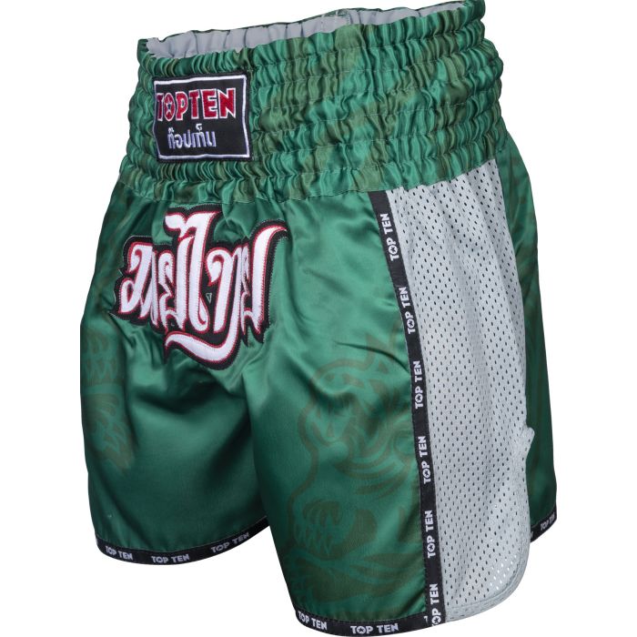 Show your affiliation with Muay Thai and get the IFMA Thai shorts “Patchara” from TOP TEN. The casually short sports shorts are 100% tailored to the requirements of Thai boxing. In addition to the extra short fit, the typical side cuts, and a wide comfort waistband for a secure hold, the “Patchara” with other extras will be the best in your wardrobe. Mesh strips regulate ventilation, while the hard-wearing functional fabric ensures that your Thai shorts have a long service life. In terms of design, the TOP TEN pants no doubt that Thai boxing is not just your martial arts,…