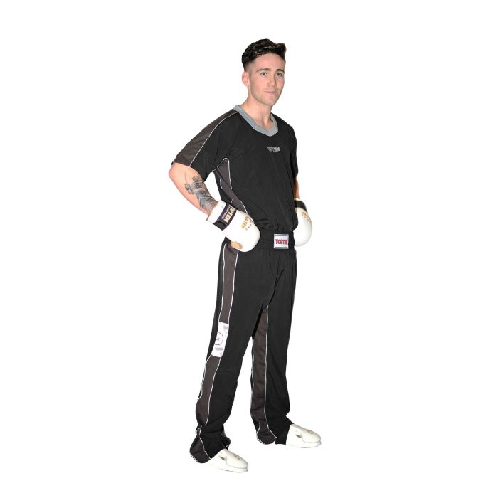 The “FLEXZ” kickboxing uniform from TOP TEN comes as a feather-light two-piece suit in your sports bag. The t-shirt is a real eye-catcher with its special V-neck and meets the highest demands in terms of functionality. The pants and shirt of the “FLEXZ” sports suit are made of hard-wearing Dobby Dryfit microfibers. As light as silk, the material is breathable and dimensionally stable. Thanks to the movement-friendly cut, nothing stands in the way of your zest for action in kickboxing training. Ultimately, the timeless design of the “FLEXZ” kickboxing uniform speaks for its great popularity among kickboxers. Additional advantages: light…