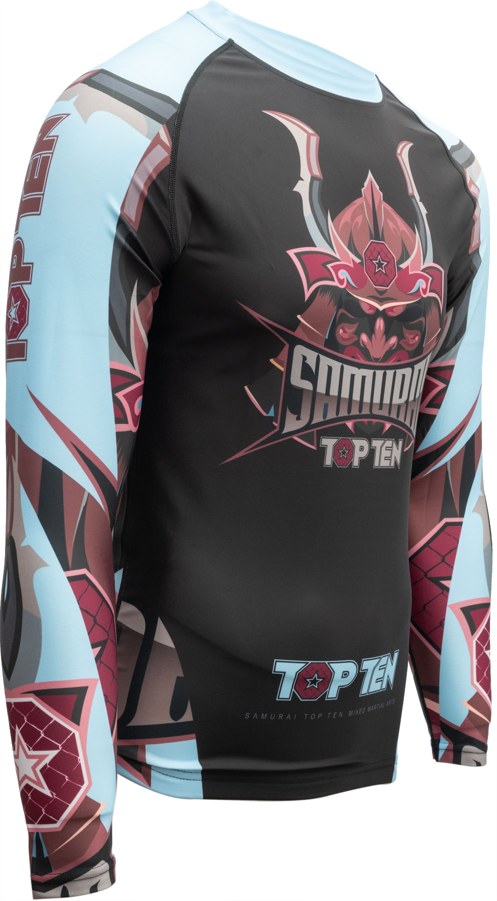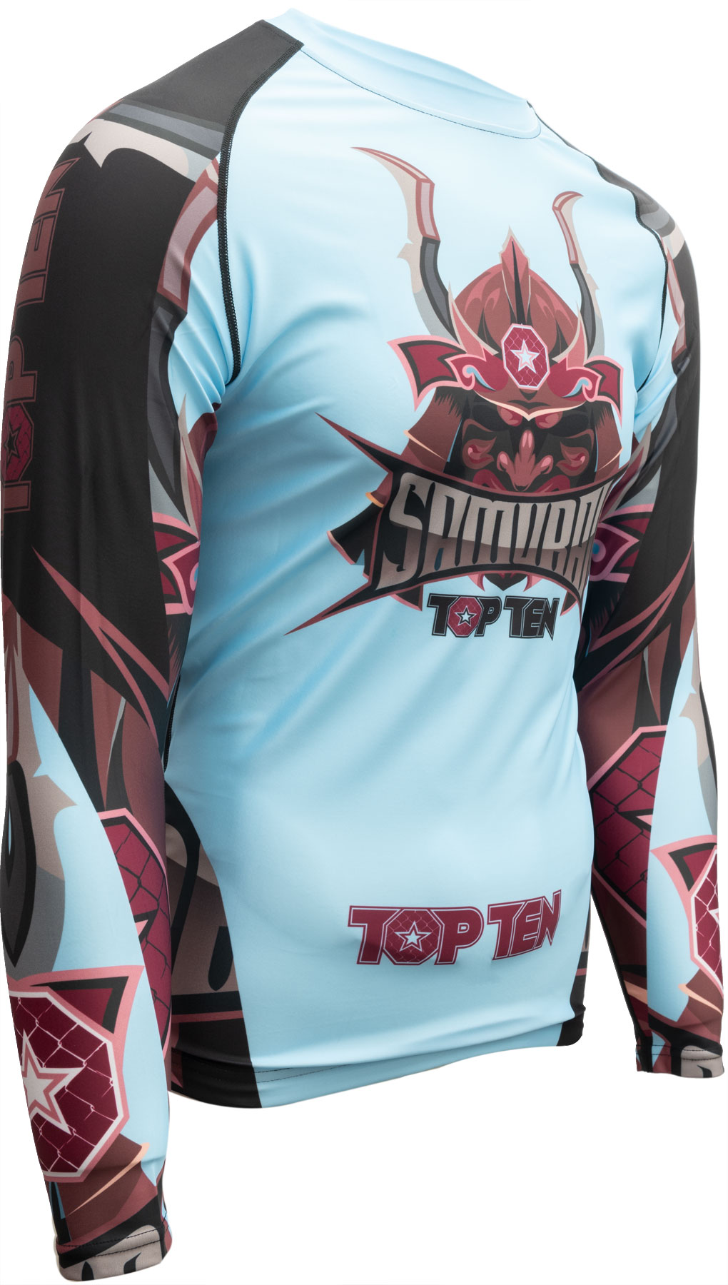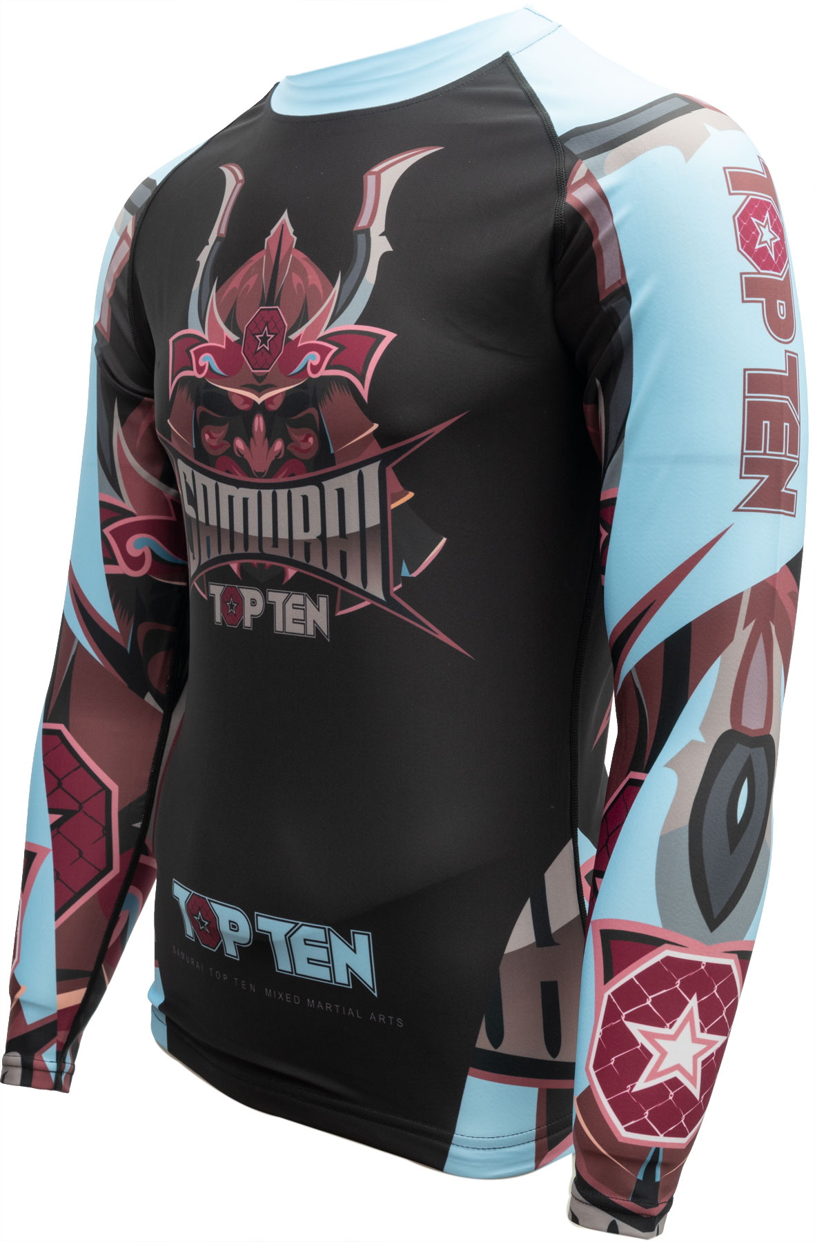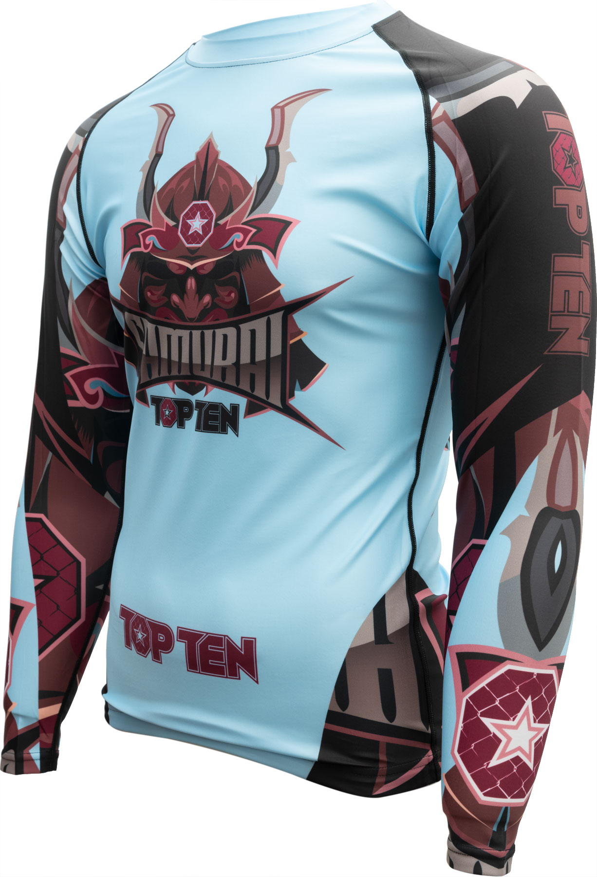 Questa maglietta di TOP TEN appartiene alla nuova élite nel tuo guardaroba. Non è solo il design a rendere unica la Rash Guard ”Samurai”. Con un tessuto realizzato in fibre funzionali ad alte prestazioni, la maglietta a compressione a maniche lunghe supporta il tuo corpo e attiva il lavoro muscolare. Il sangue scorre più velocemente nelle tue vene, e quindi più ossigeno arriva ai muscoli, che lavorano più efficacemente. Non devi nemmeno muoverti molto per sentire le prestazioni della maglietta ”Samurai”. Indossala per ottimizzare la tua postura o goditi un tempo di rigenerazione significativamente ridotto con la maglietta a maniche…