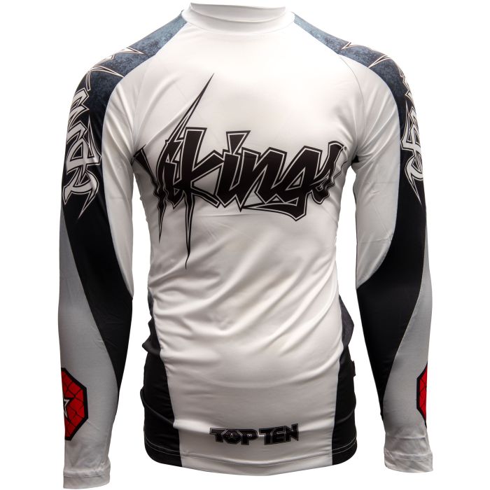 A top that just makes you want more – more movement, martial arts, and fun. With the “Vikings” rash guard, TOP TEN presents you with a unique piece of fabric. Skin-friendly, breathable, and pressure-optimized, you get the best out of yourself. It fits snugly and optimally warms up your muscles in a skin-tight fit. In addition, muscle activity is stimulated, which leads to more oxygen in the body and thus to more endurance. Colors and motifs are evaporated on the synthetic material in a high-quality way, which means that the “Vikings” were convinced with its first-class quality for a long…