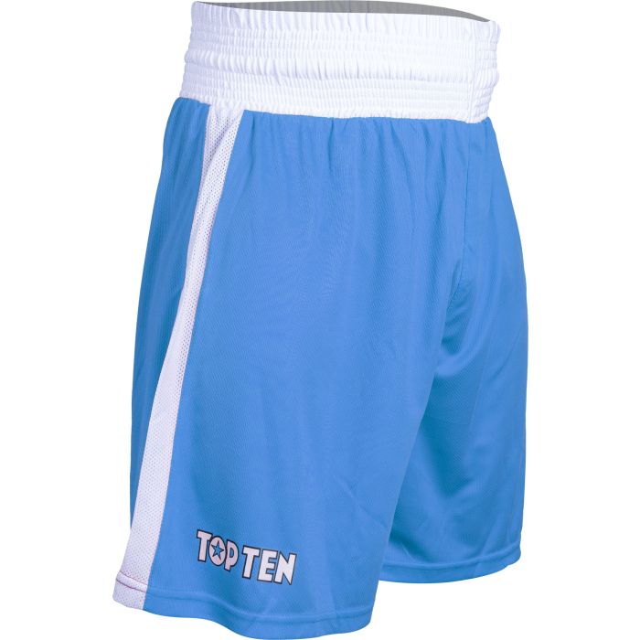Mostra la tua migliore forma sul ring con i pantaloncini “Competition” di TOP TEN. Una fascia comfort bianca e fresche strisce in rete sui lati completano il design rosso o blu. Con il 100% di poliestere, i “Competition” sono tra i pantaloncini sportivi eccezionalmente leggeri nello stile IBA collaudato e altamente durevole. Il taglio diritto e le cuciture extra piatte rendono i “COMPETITION” comodi da indossare ai massimi livelli di prestazione. La struttura a fibra aperta garantisce un costante scambio d’aria, in modo che i pantaloncini “Competition” siano irresistibili in allenamento, sparring e competizione. design attraente materiale molto leggero fascia…