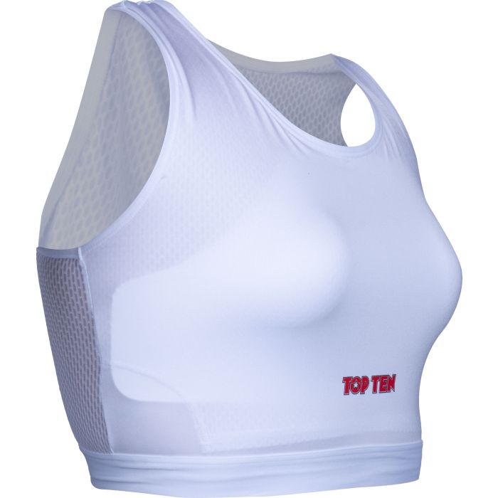 TOP TEN garantisce il massimo livello di sicurezza con il paraseno femminile “Maxi”, che include inserti rigidi in plastica. Questa combinazione di tessuto e guscio protettivo fa battere forte il cuore delle atlete di arti marziali perché comfort e sicurezza non vengono trascurati. Con il suo taglio più lungo, il paraseno femminile “Maxi” avvolge saldamente tutta la zona della parte superiore del corpo. Grazie al materiale traspirante ed elastico, ti senti comunque completamente a tuo agio e puoi allenarti con tutta la grinta. Grazie al sistema di supporto, il TOP TEN “Maxi” offre un grande sostegno in modo da prevenire…