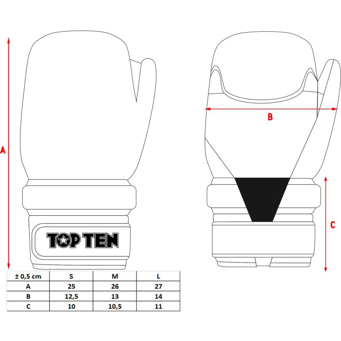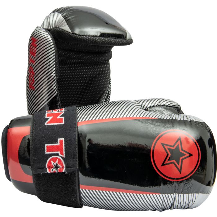 In Pointfighting, TOP TEN does its best for you and presents first-class quality protective equipment with the “Star & Stripes” Pointfighters. The open gloves are perfectly tailored to the unique challenges of the kickboxing discipline Pointfighting. TOP TEN relies on a high-quality and durable cover made of animal-friendly synthetic leather for the outer hand. On the other hand, the inner lining made of anti-slip material offers a perfect fit and an absolute feel-good program for your skin. The name of the Pointfighter, “Star & Stripes,” is the design. In addition to the well-known TOP TEN Company Star, there is also…