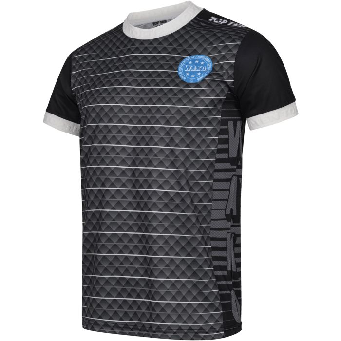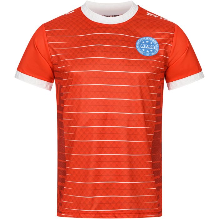 Rinfrescati con la T-shirt TOP TEN “WAKO” realizzata in leggero materiale funzionale. La “WAKO” è stata sviluppata appositamente per il kickboxing e, con la sua etichetta WAKO, soddisfa i requisiti per gli sport da contatto leggero. Il design sublimato con effetti di stampa grafica e i polsini TOP TEN garantiscono un look accattivante. Ulteriori vantaggi: Maglietta ufficiale con etichetta WAKO per il contatto leggero Logo TOP TEN 3D in rilievo sul bordo della manica Stampa a sublimazione di alta qualità Classico taglio a T con scollo rotondo Facile manutenzione Misure
