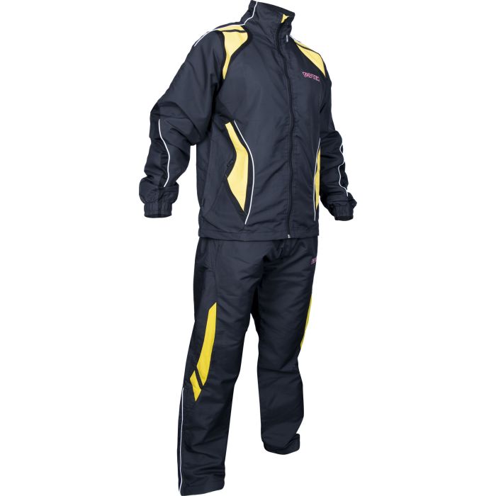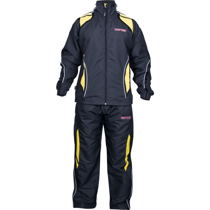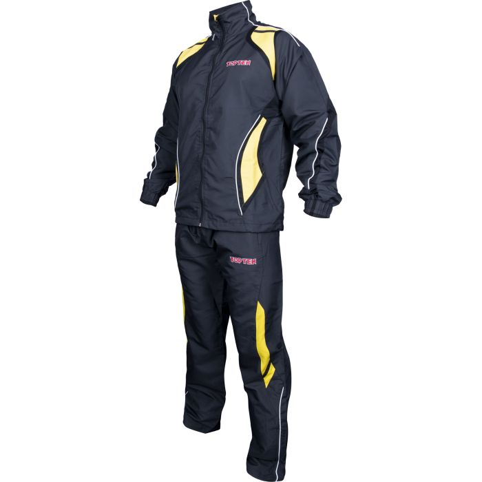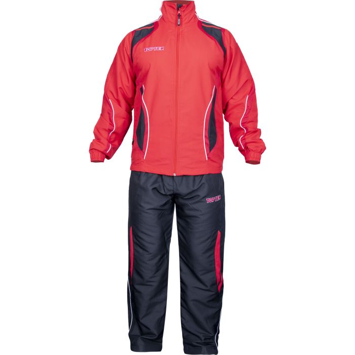 The design of the sporty double is unique. The TOP TEN tracksuit convinces with ergonomic seams, and with its peppy print elements and contrast piping in its 4 color variants provides an unmistakable look. Not only can the zip jacket and long trousers be seen together, but also individually combined with other basics of your sports wardrobe, the comfortable quality leaves nothing to be desired. With a successful mix of Dobby Dryfit and Micro Dryfit polyester, the functional construction of the fabric leads to temperature-regulating properties. In the practical pockets, you can stow everything important to you on the go…