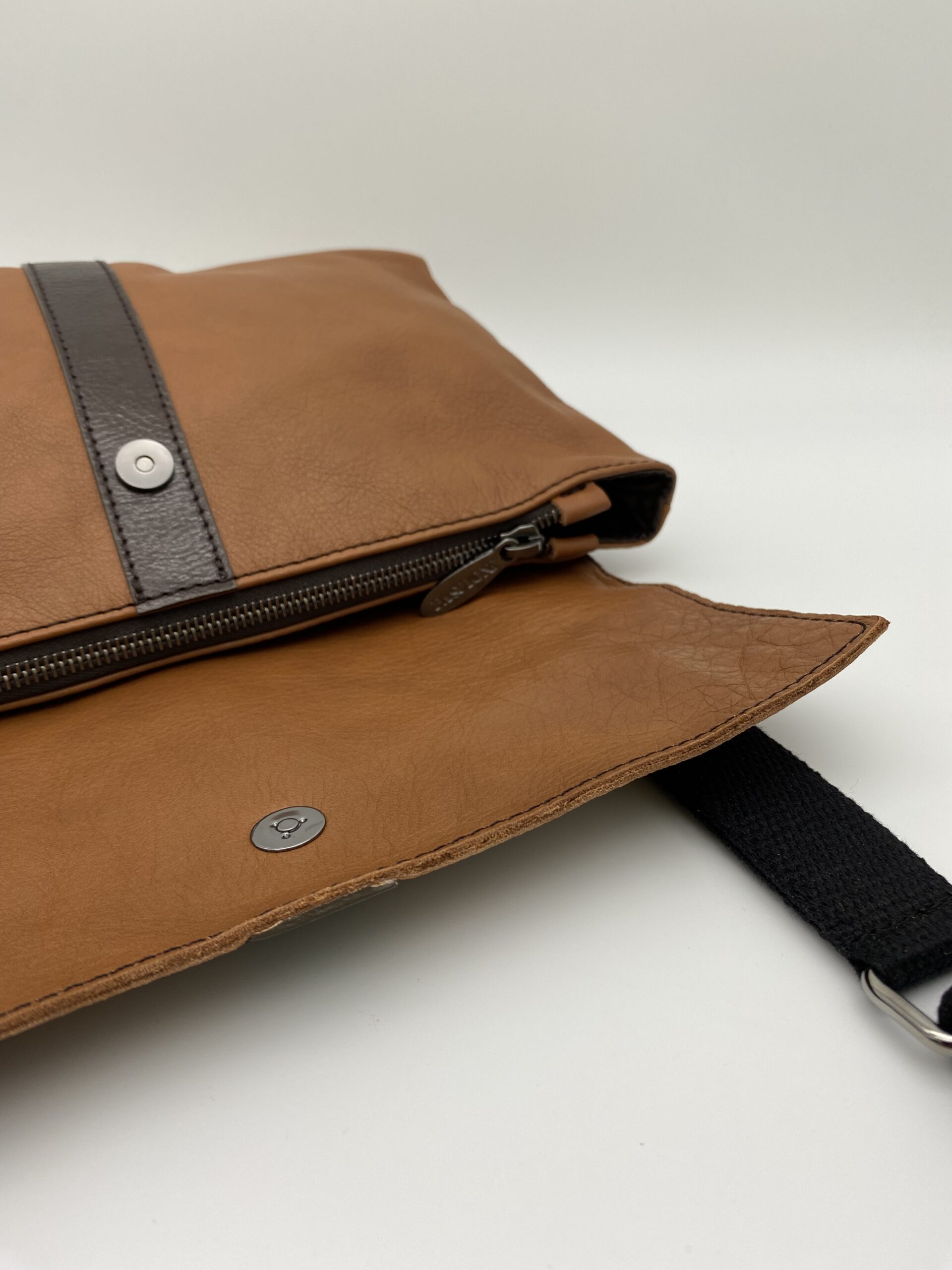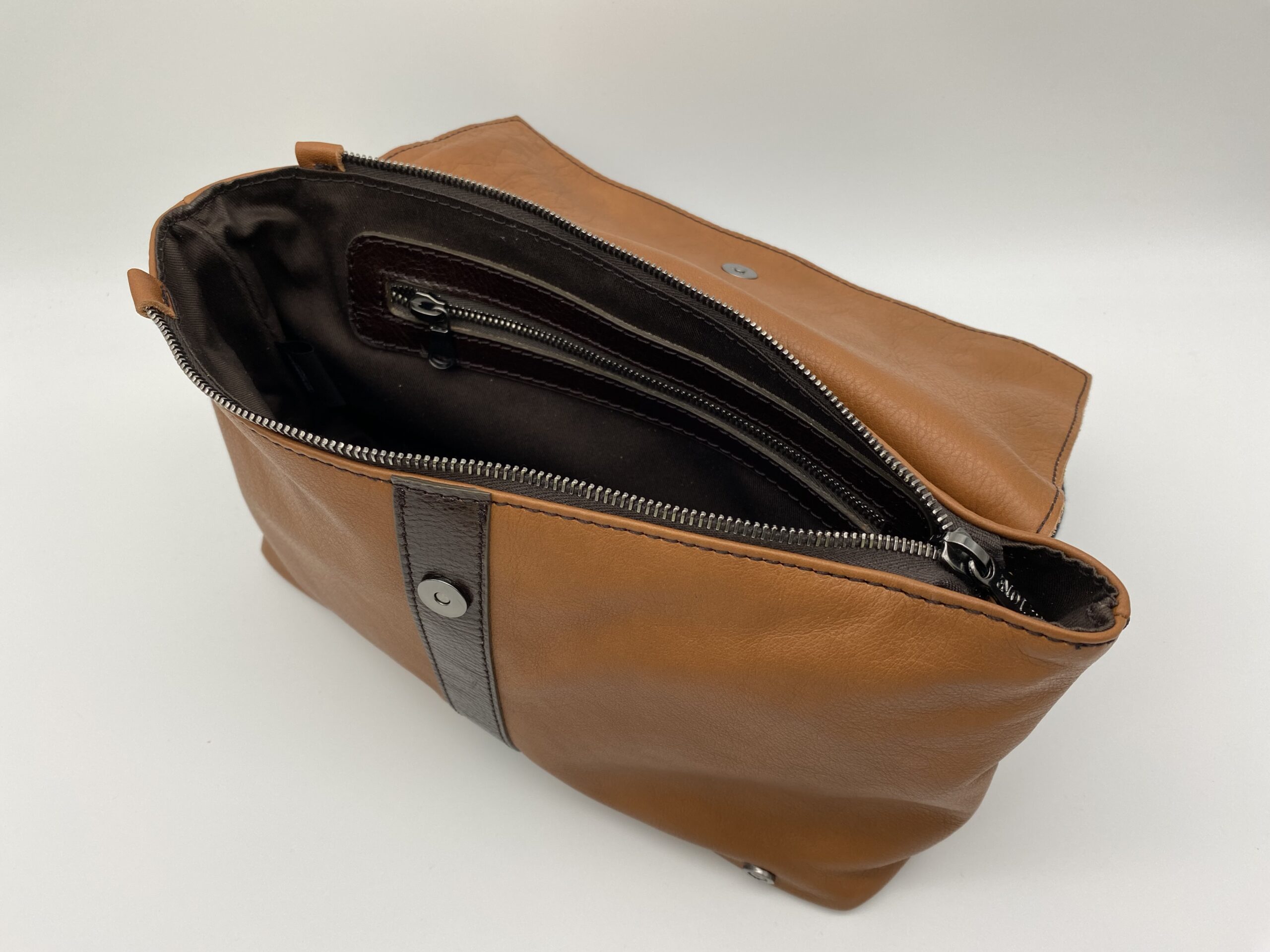 La borsa si chiude con una comoda cerniera lampo, la patta presenta un ulteriore chiusura a calamita che aiuta nella compattezza della forma.