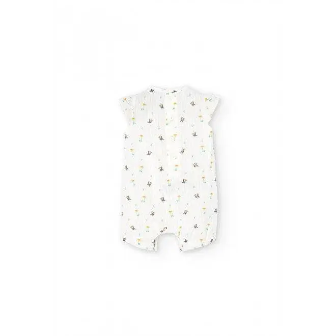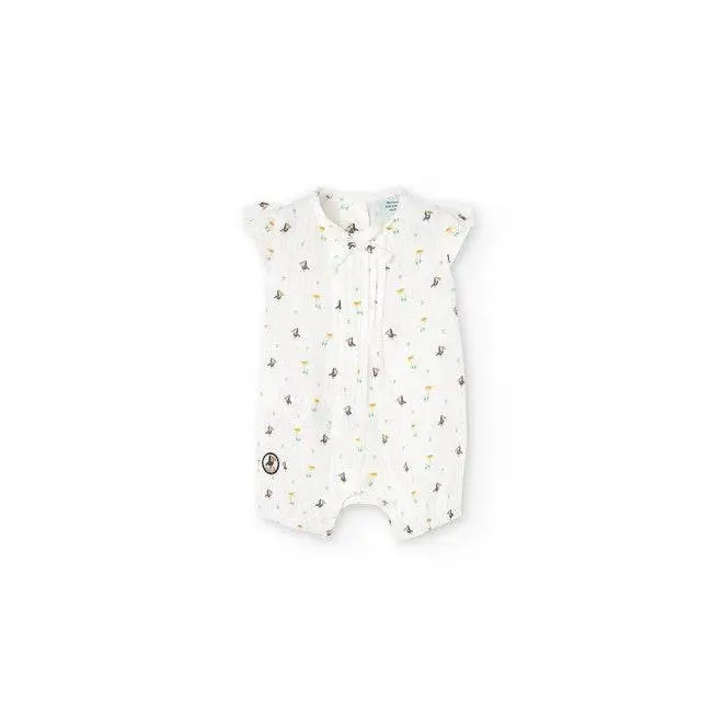 tutina corta neonato Boboli cotone bianco stampata con zip