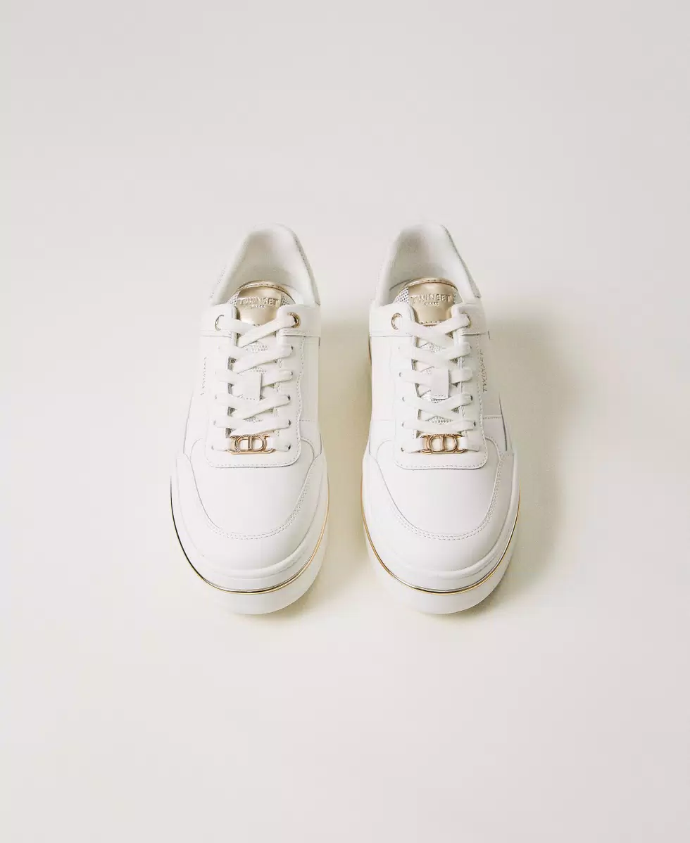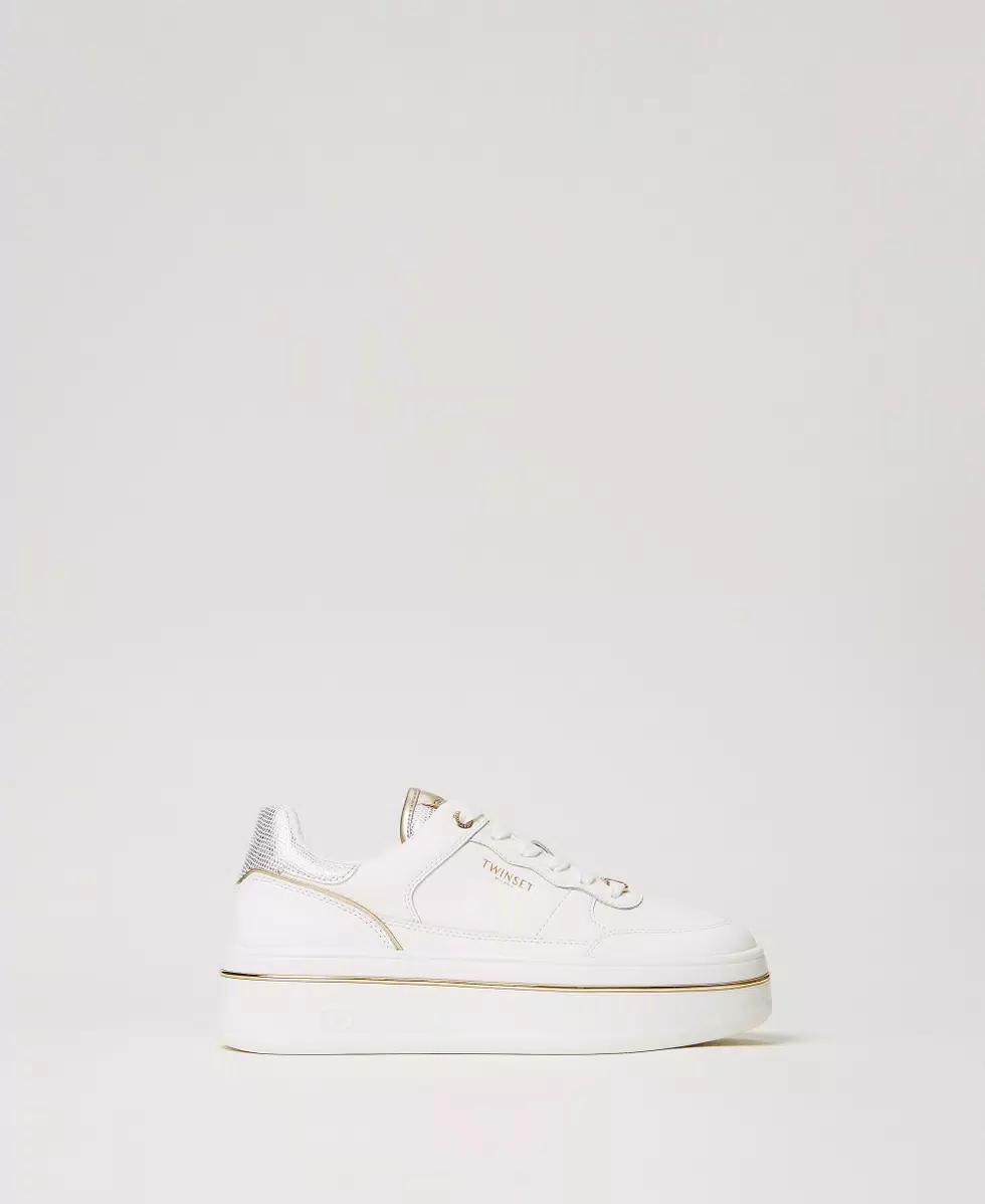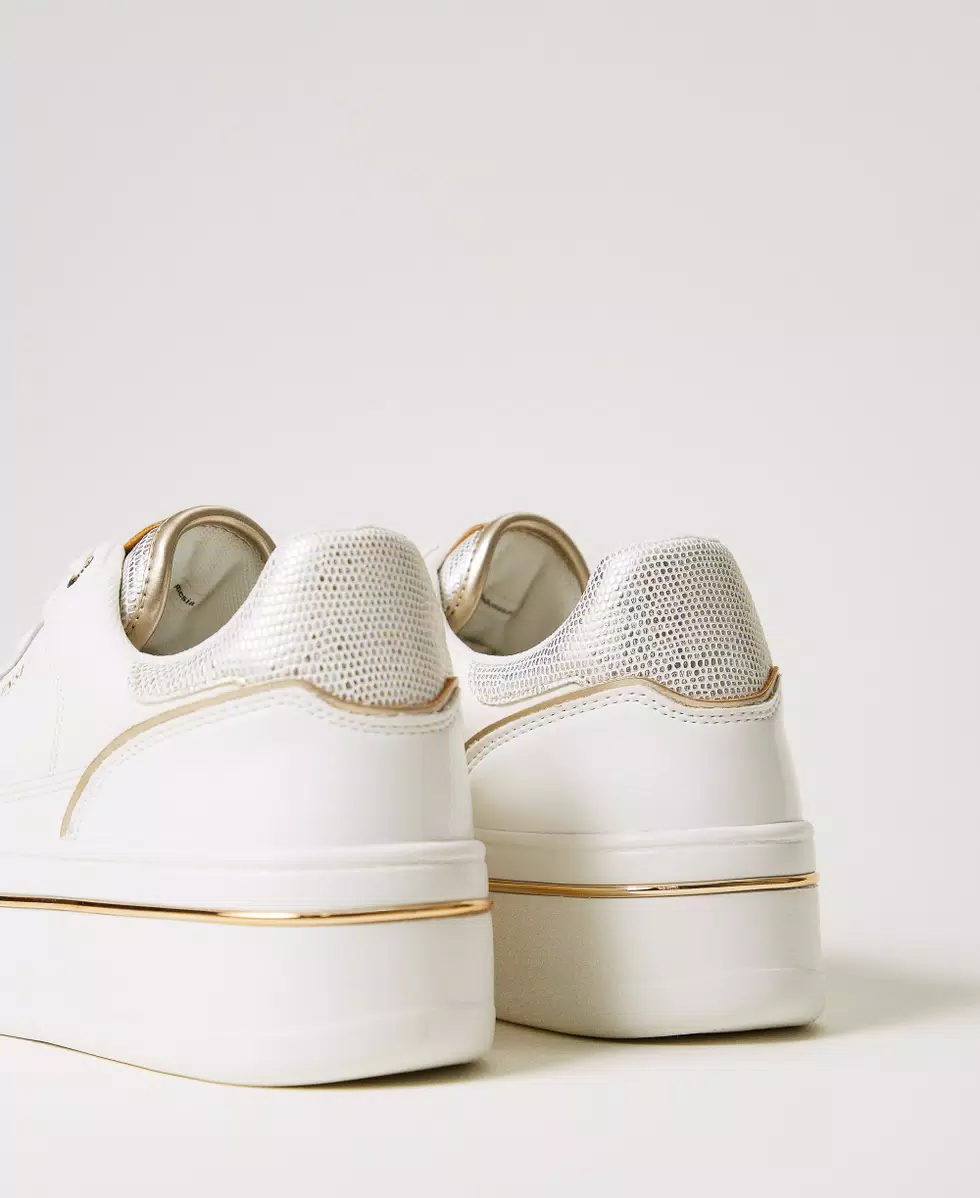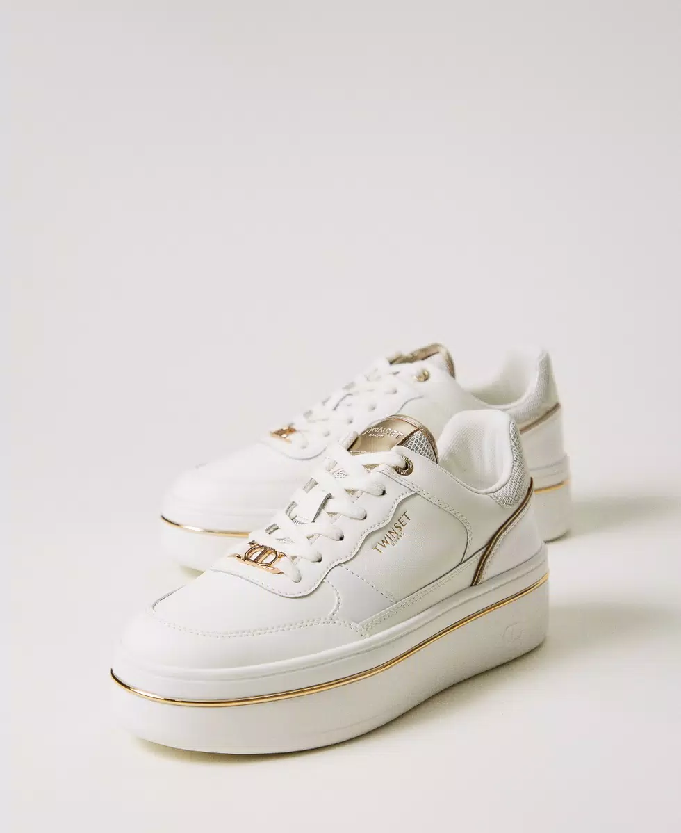 TWIN SET Sneakers platform in pelle laminata bianco oro