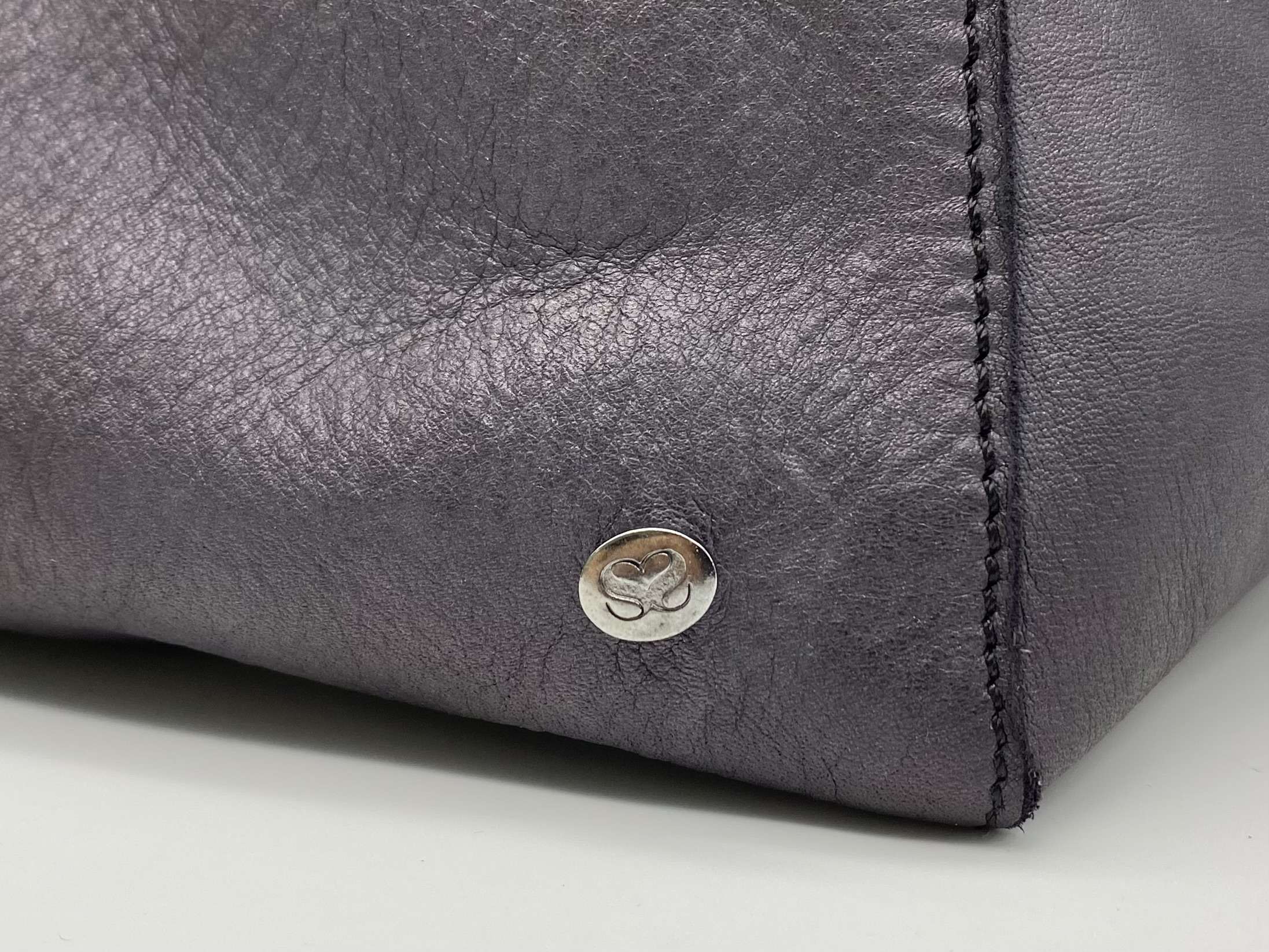 Il colore della borsa è cangiante, vira perciò nelle tonalità del azzurro cenere in base alla luce. Il colore è illuminato anche da una finitura scintillante. UNICA a dir poco!