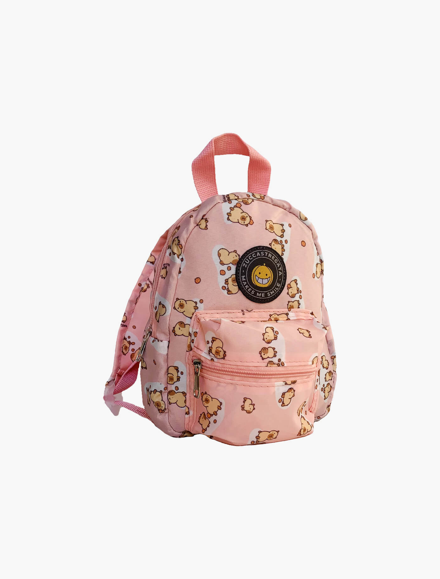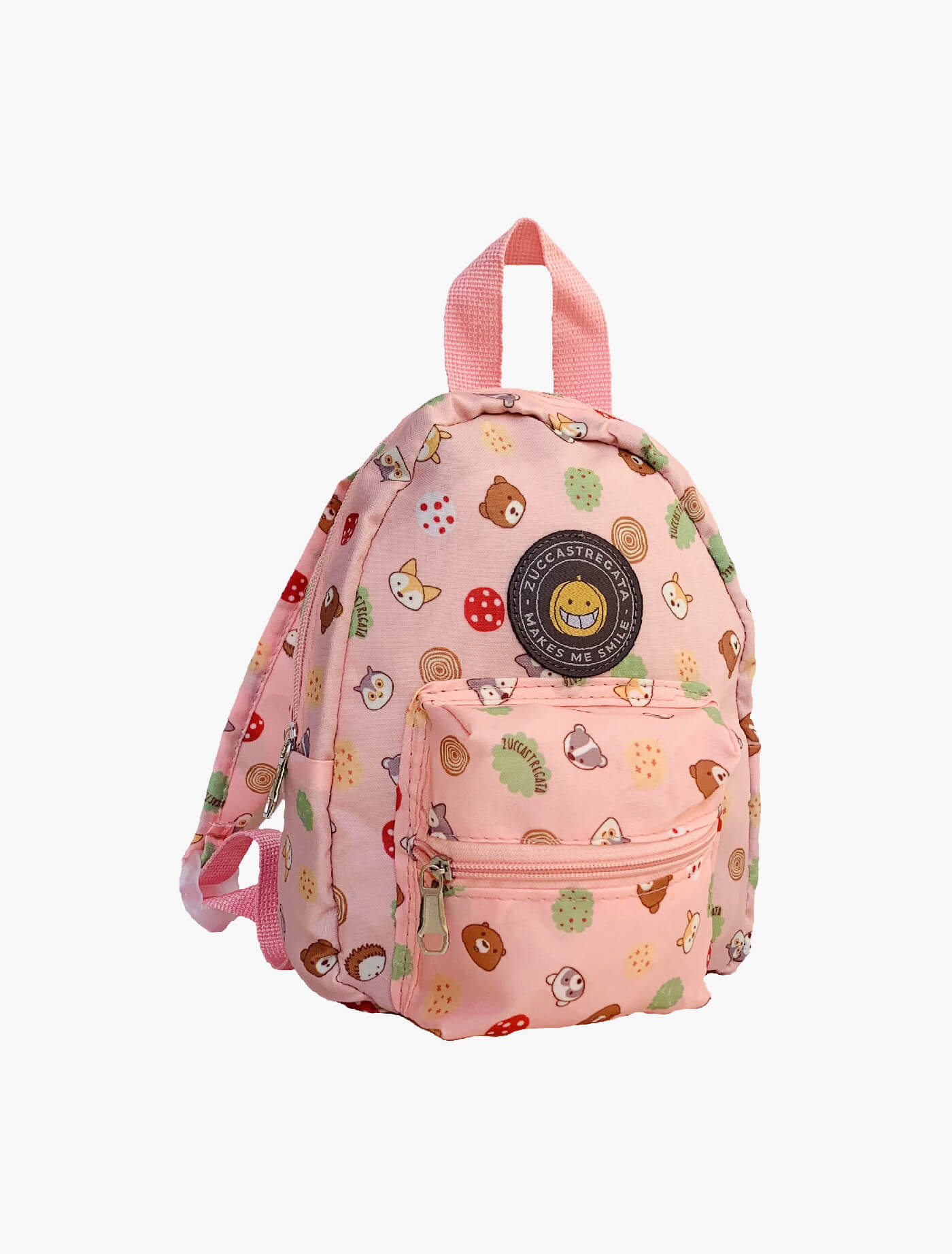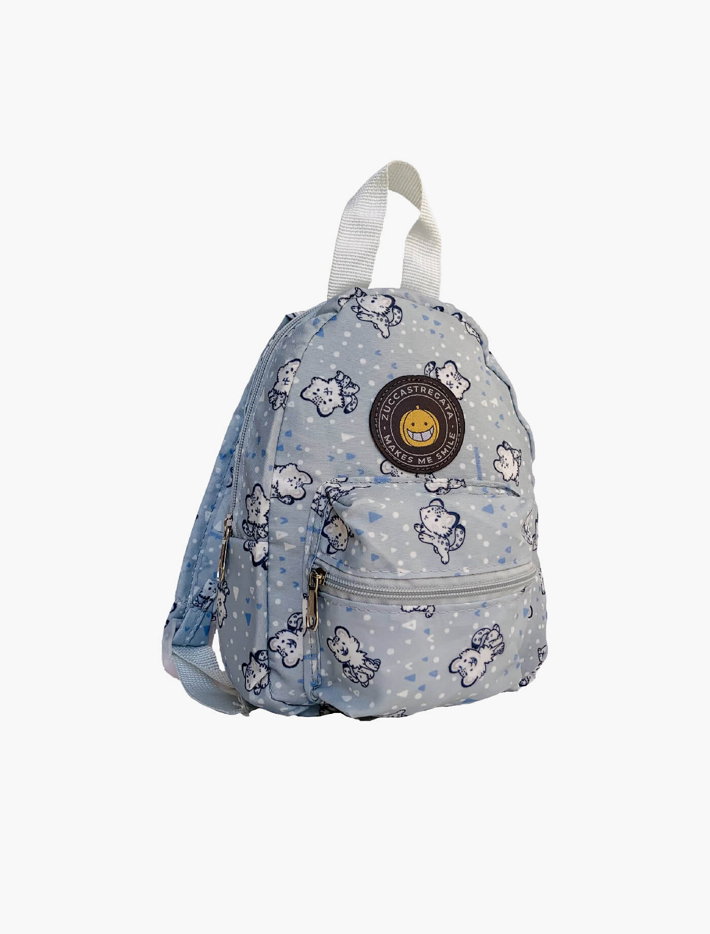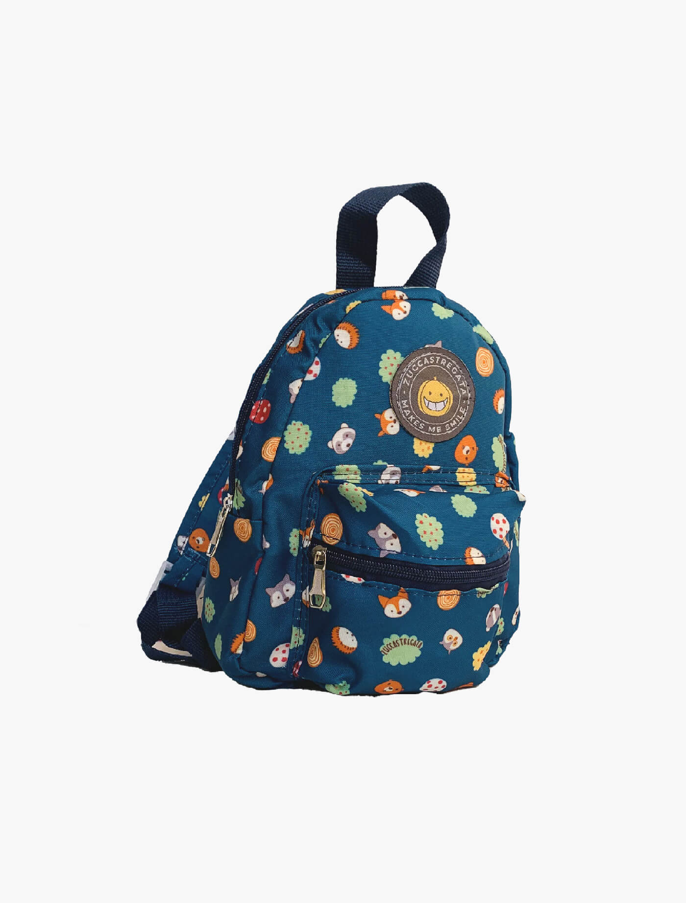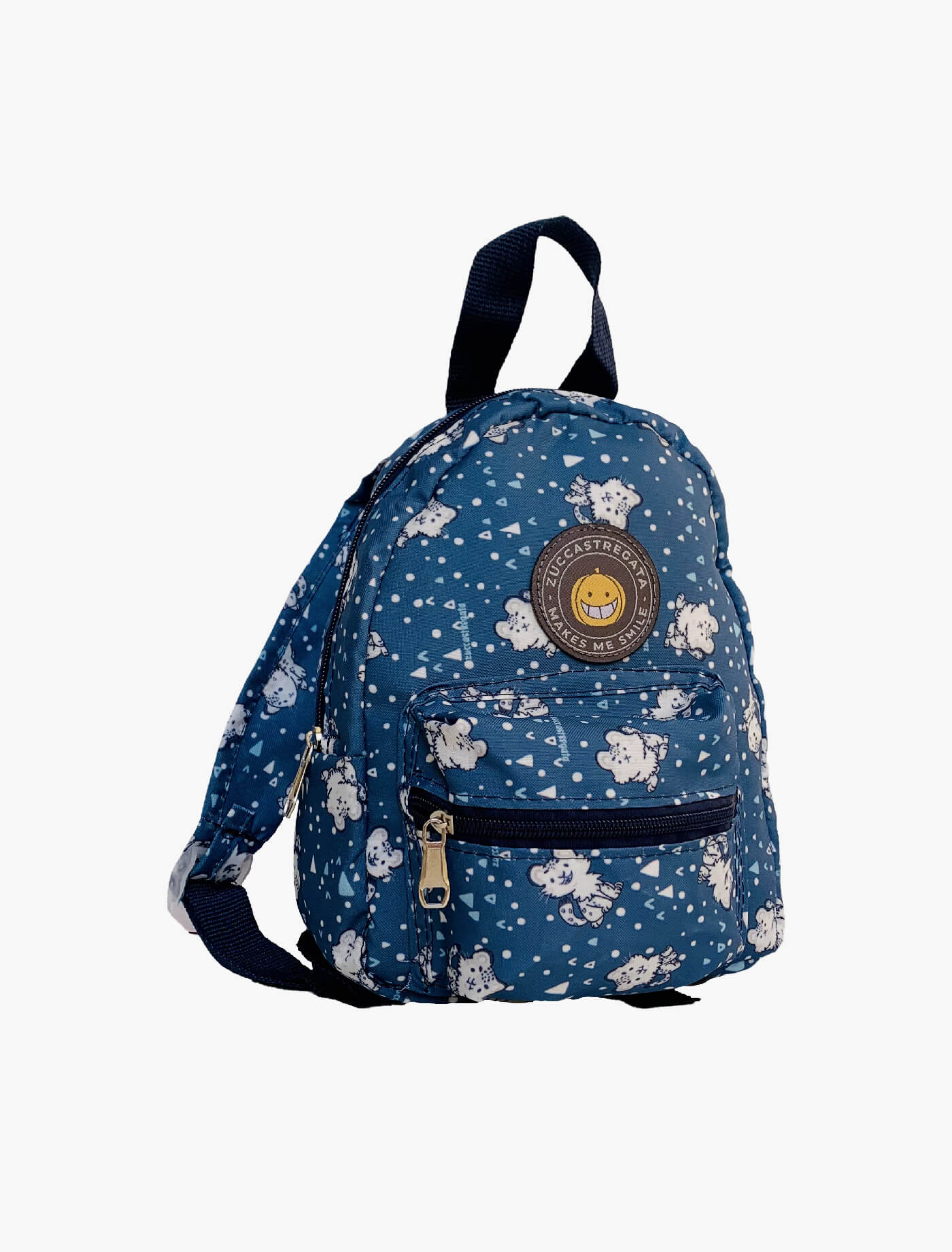 Zaino in poliestere fantasia. Manico, comode bretelle regolabili. Tasca esterna con cerniera. Misure 18 x 6 x h 23 cm