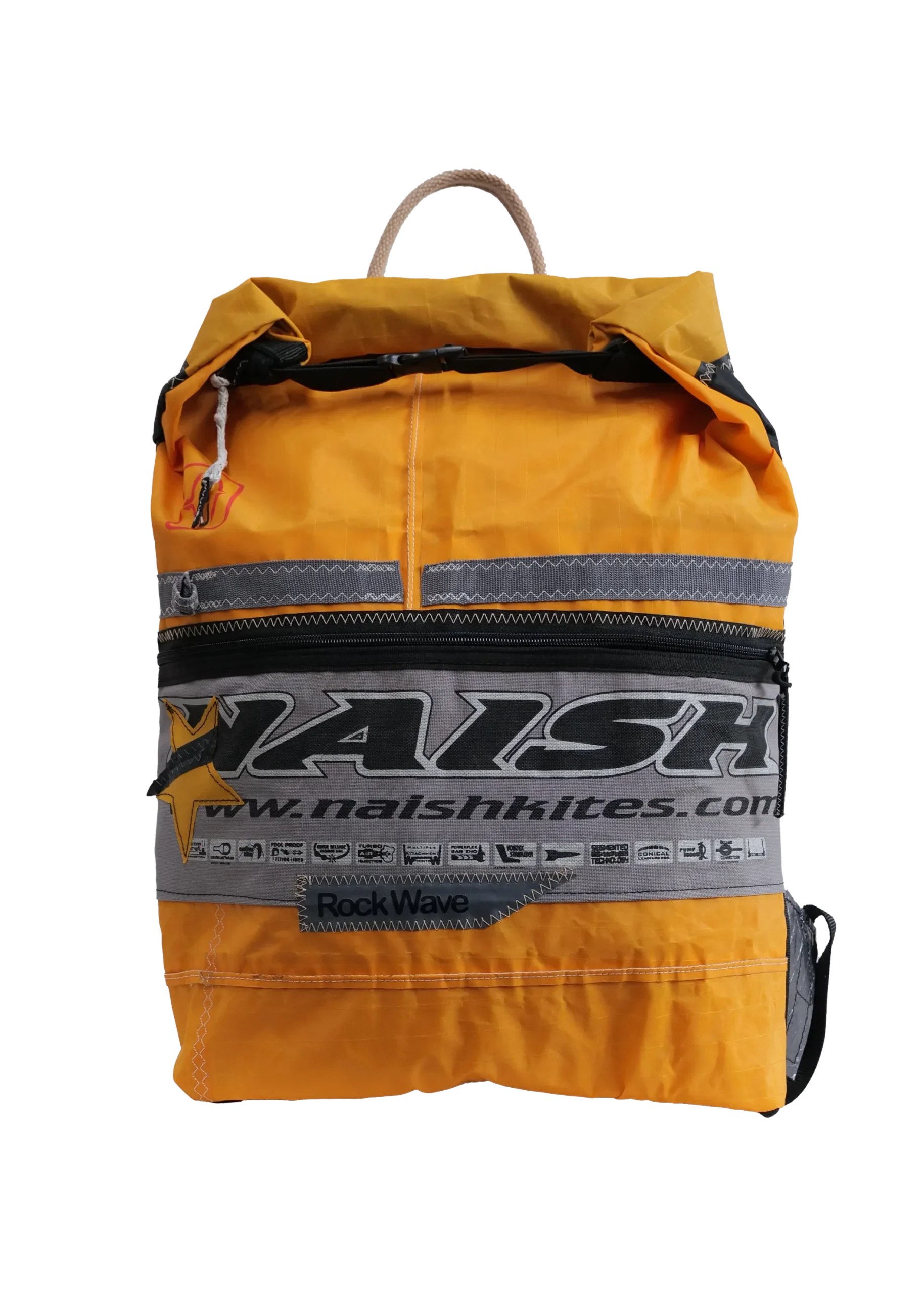 Borsone realizzato a mano in Italia con vele per kitesurf riciclate.